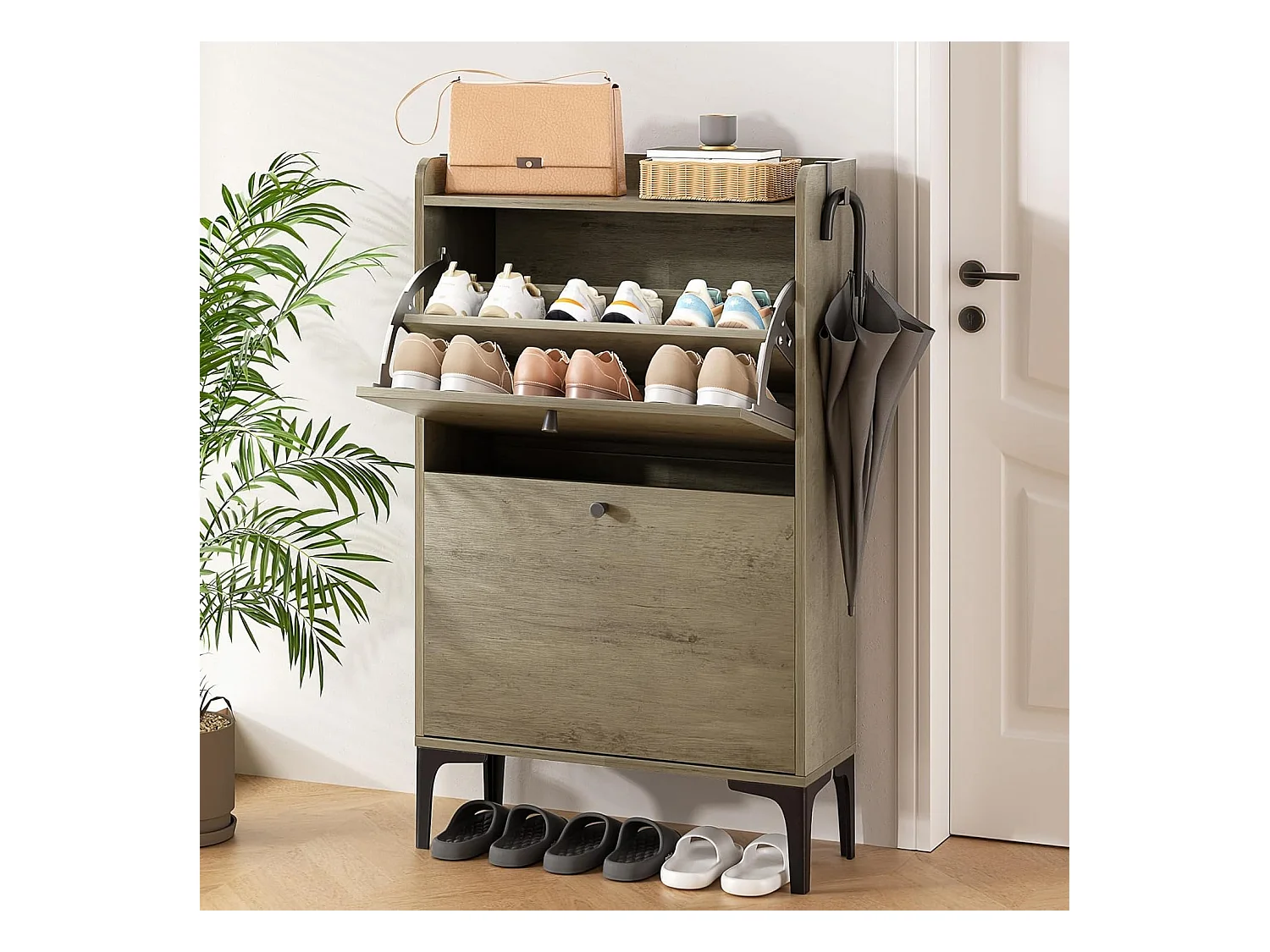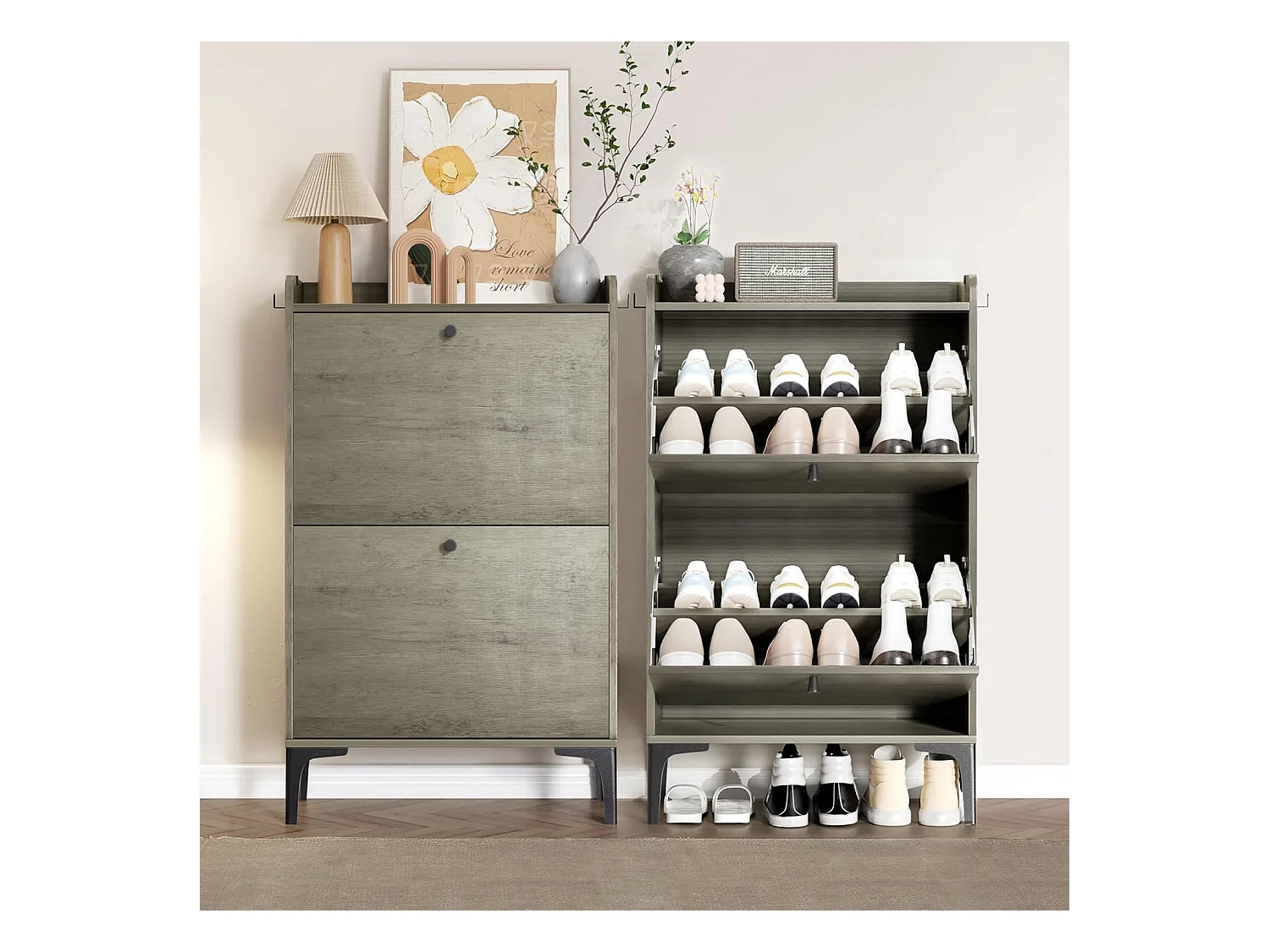 Scarpiera Dripex con 2 cassetti ribaltabili e piedini in metallo per ingresso, corridoio, soggiorno o veranda, 60 x 24 x 100 cm, grigio