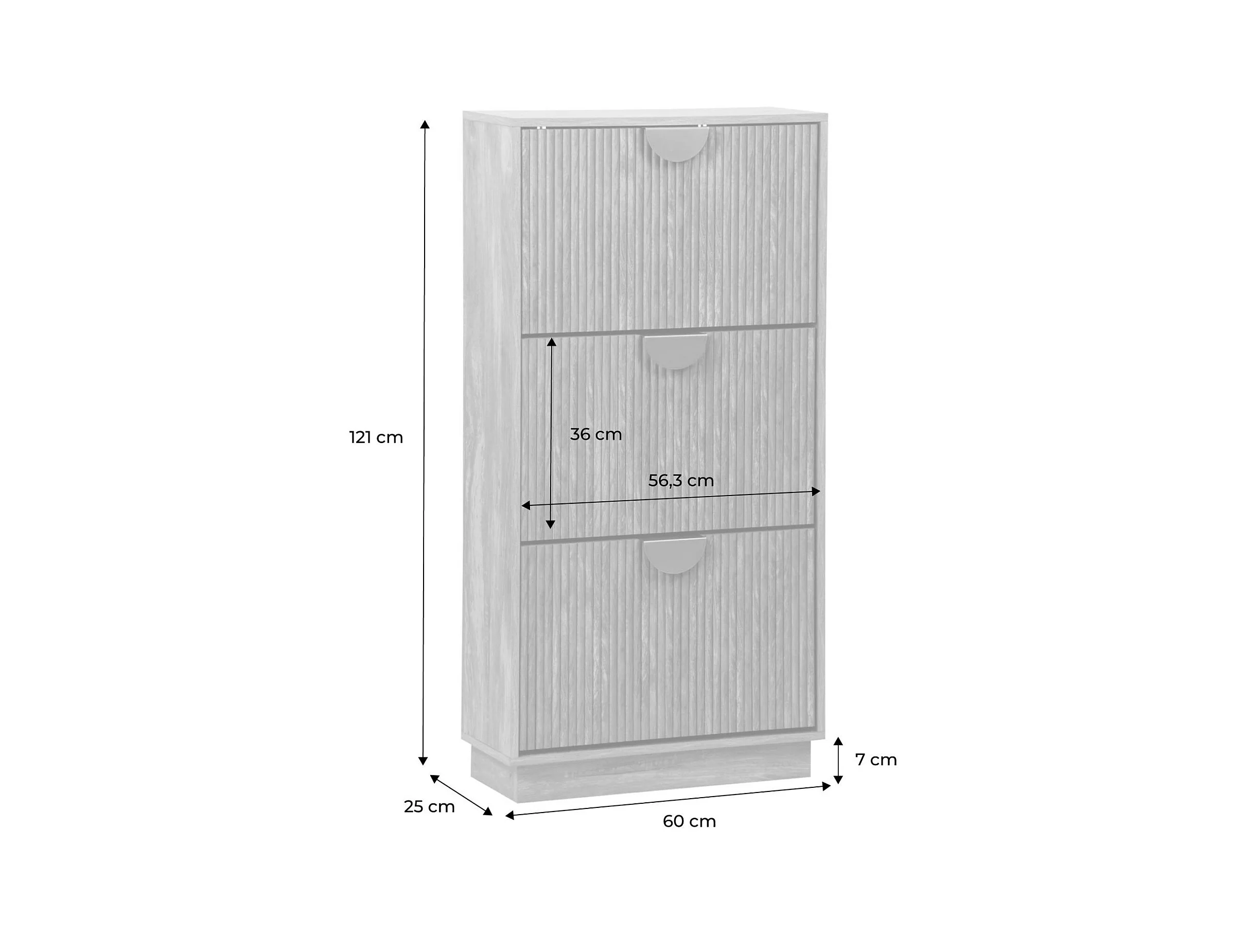 Scarpiera effetto legno di mango scanalato 3 cassetti
