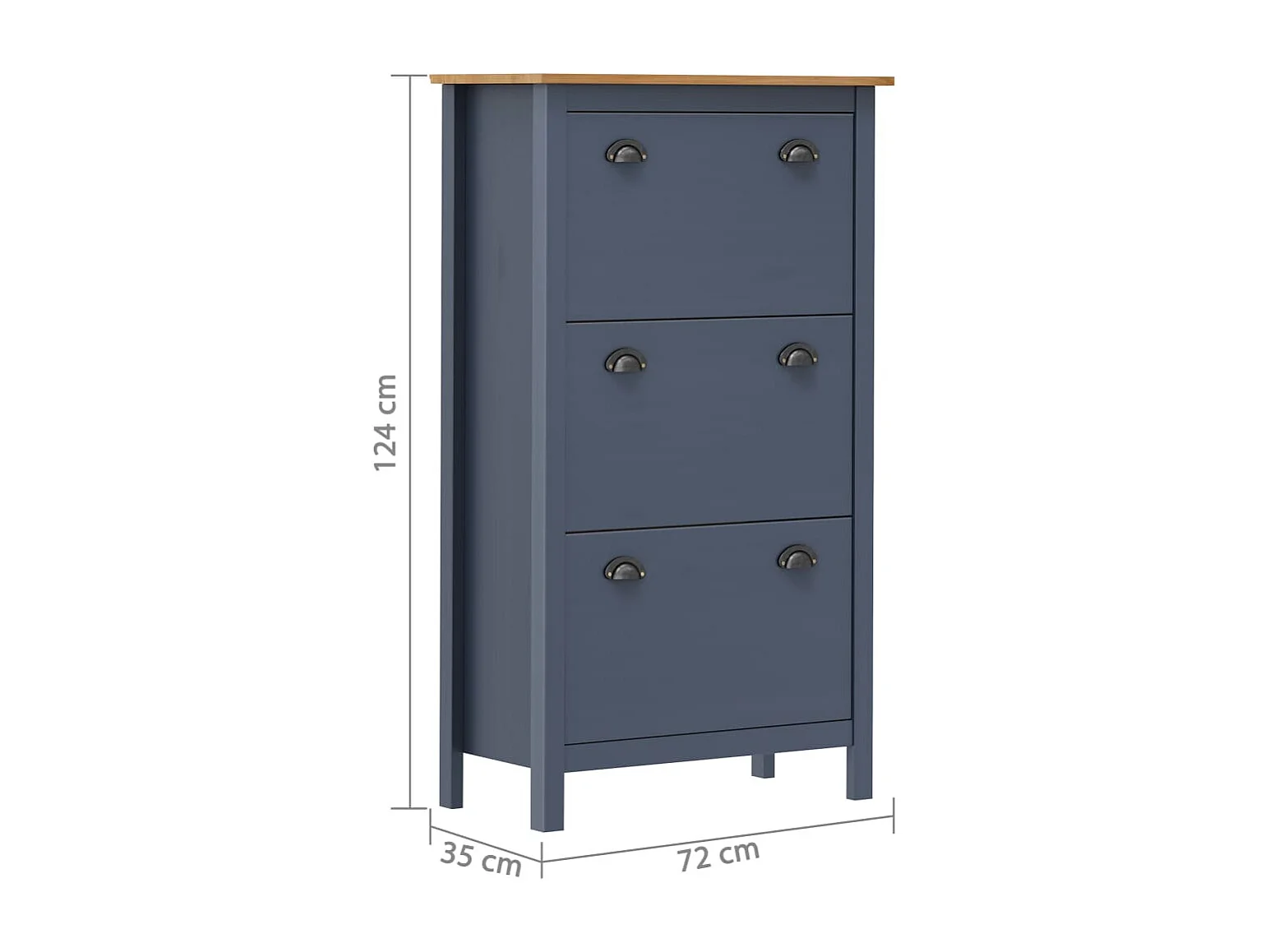 Scarpiera Hill Grigia 72x35x124 cm in legno massello di pino