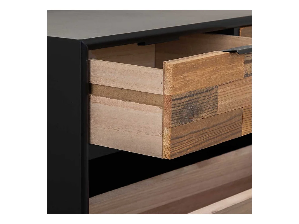 Baule in legno di mango nero invecchiato con dettagli blu. Multicolor .45x40x80 Giner y Colomer
