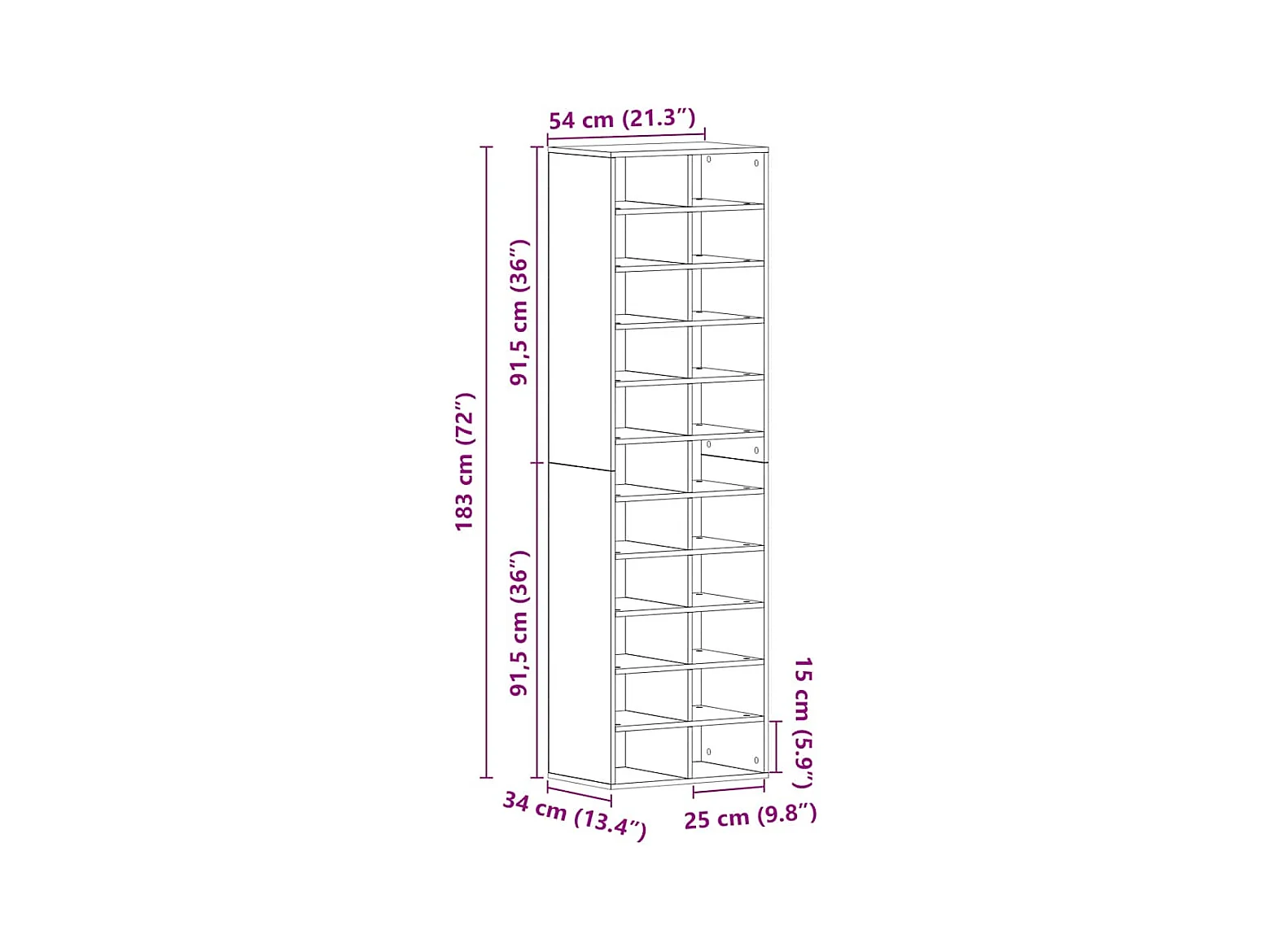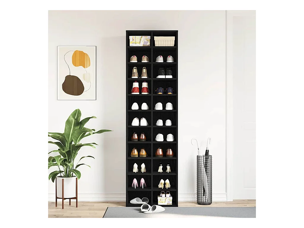 Scarpiera in rovere nero 54x34x183 cm in legno ingegnerizzato
