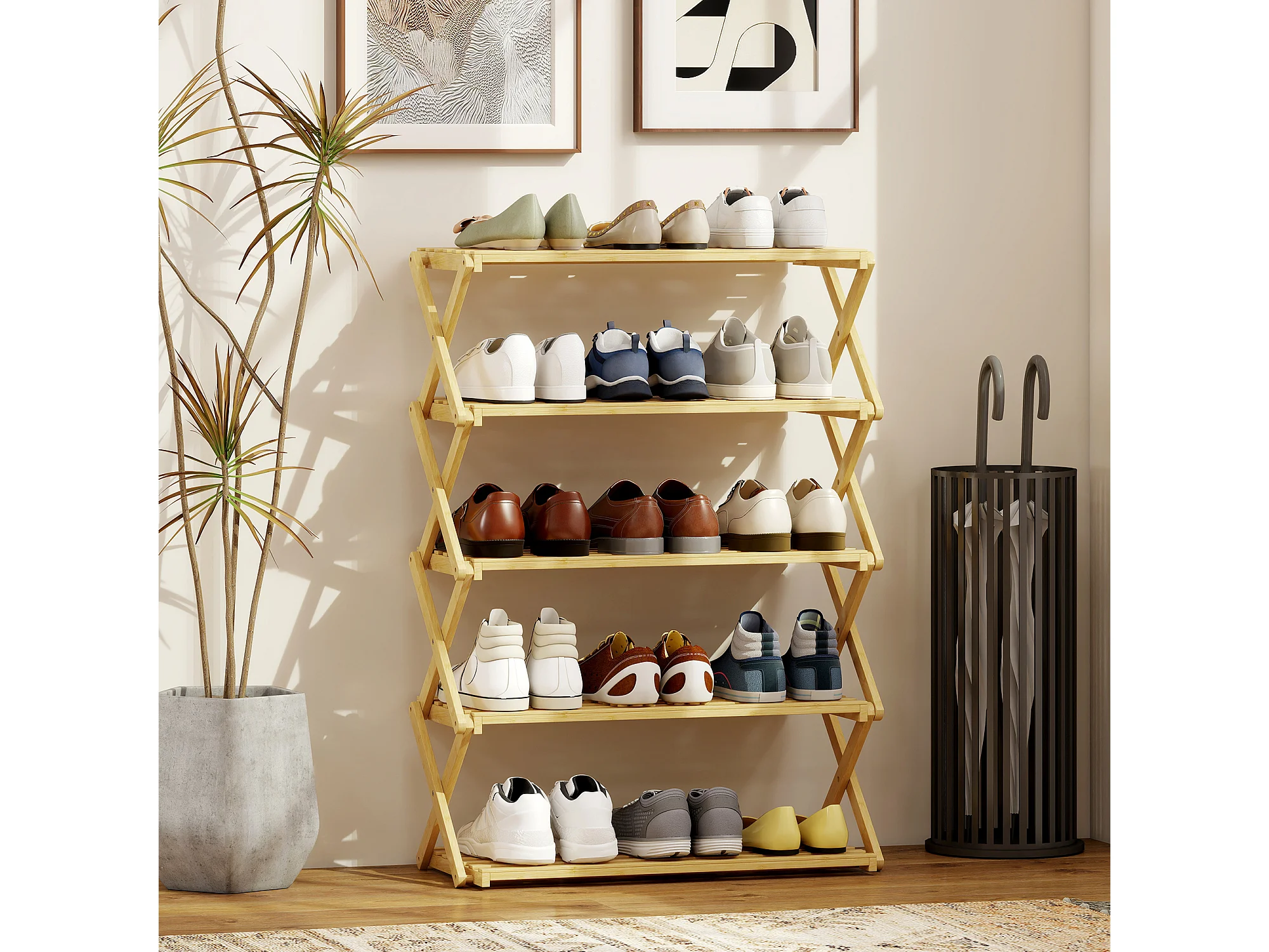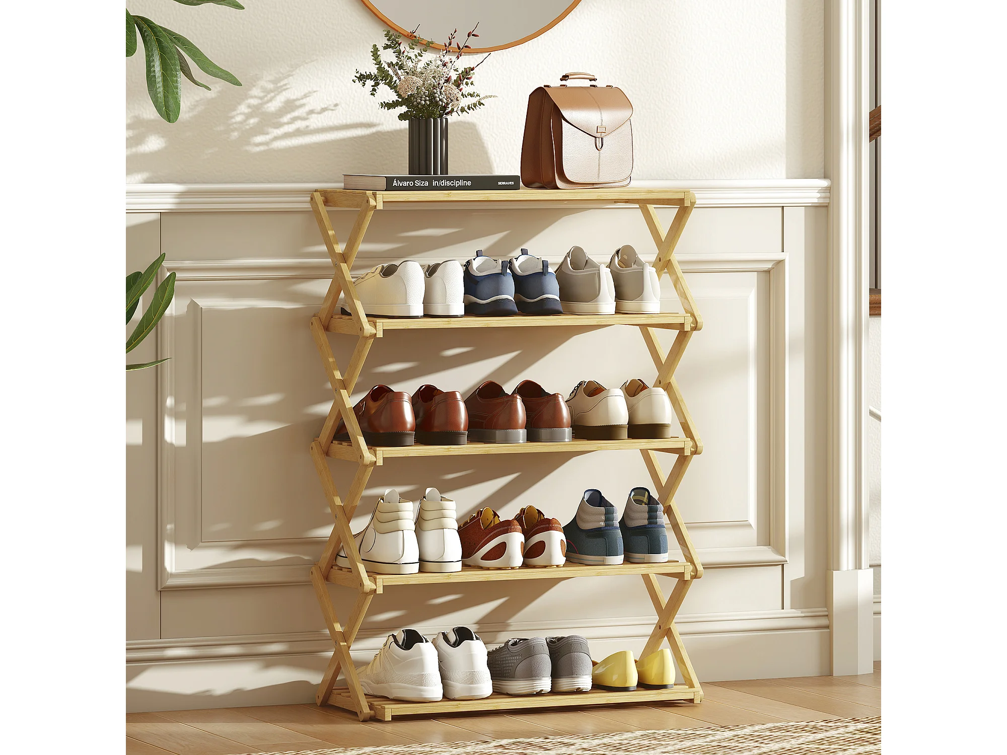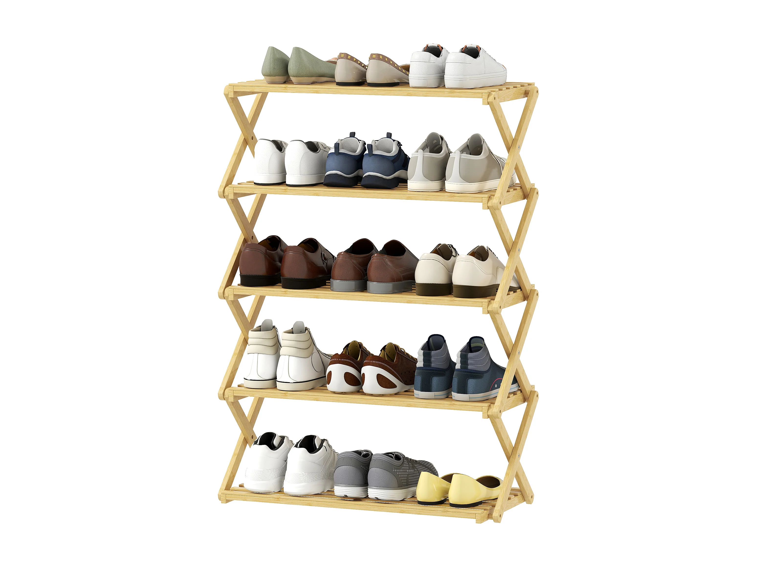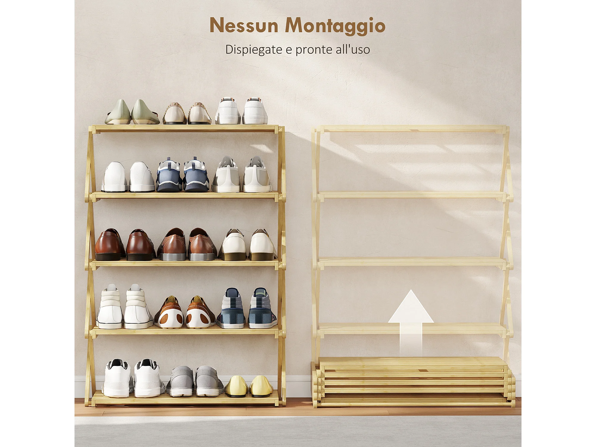 Scarpiera ingresso pieghevole a 5 livelli in bambù pronto all'uso
