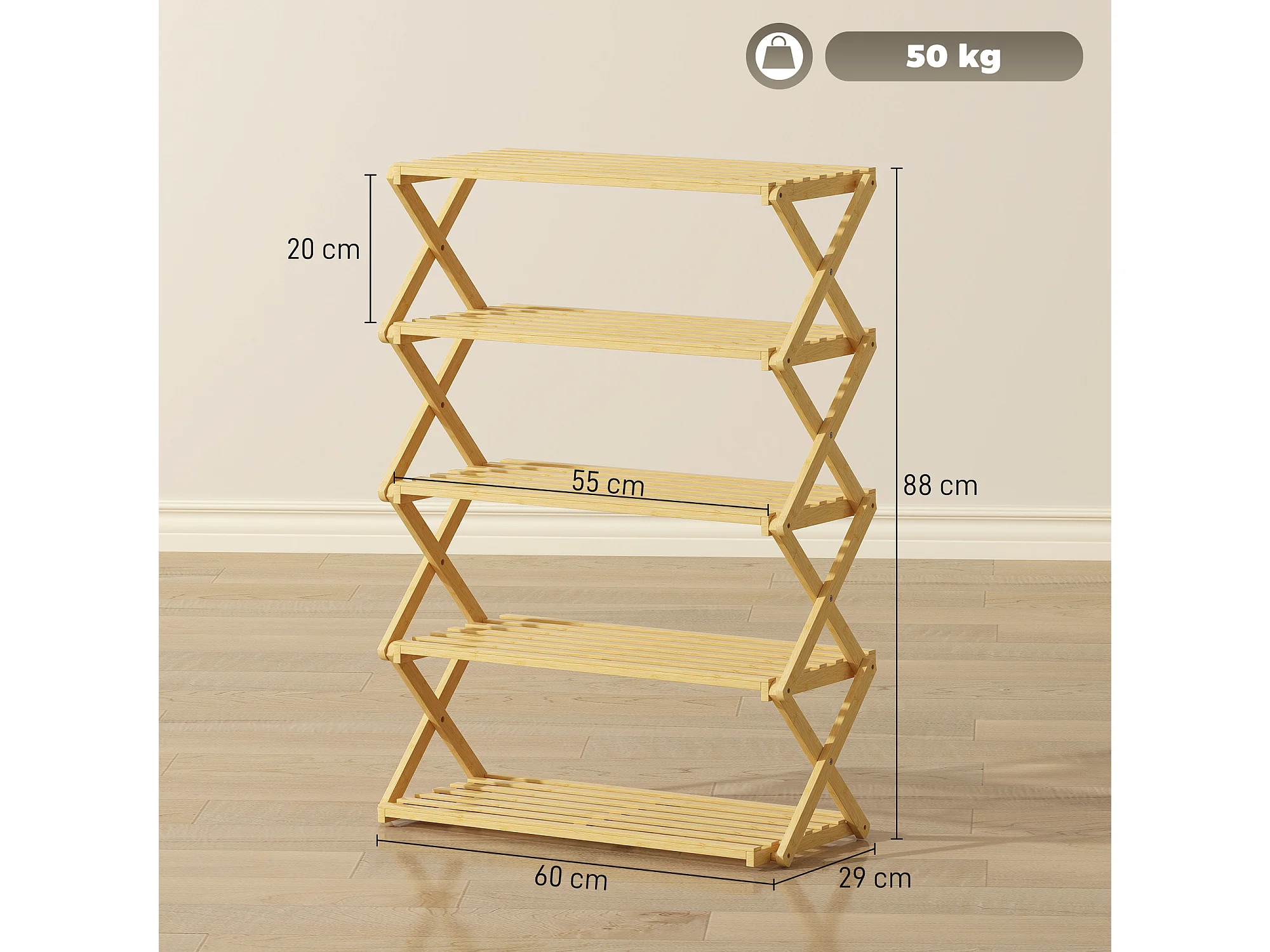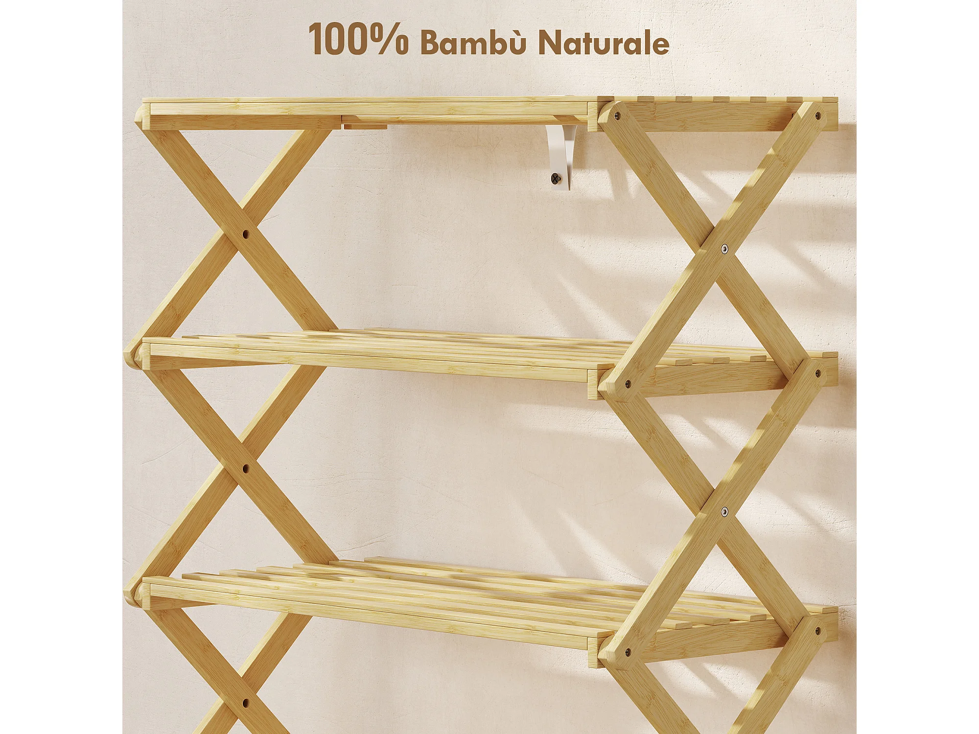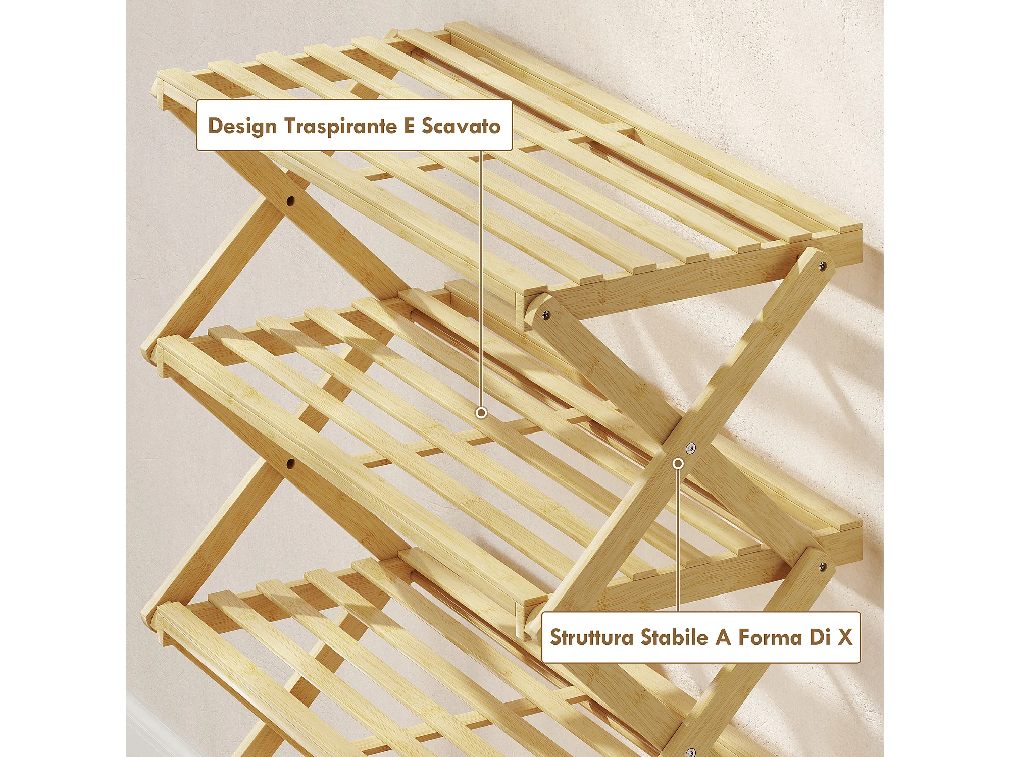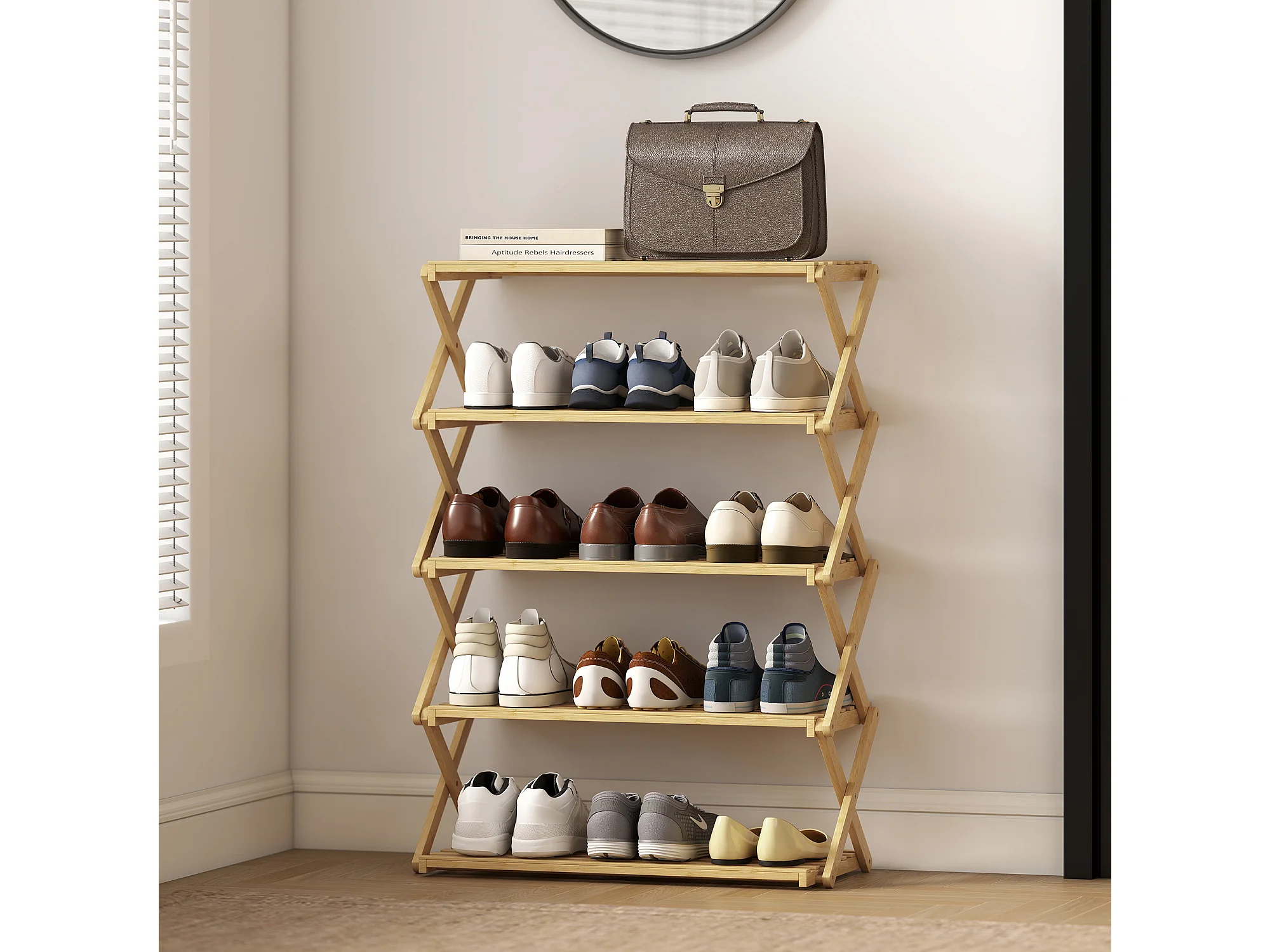 Scarpiera ingresso pieghevole a 5 livelli in bambù pronto all'uso