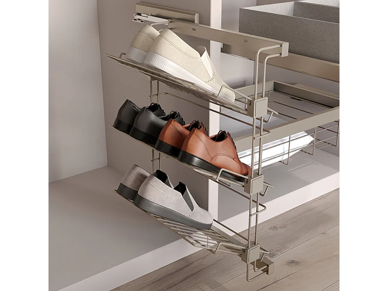 Kit cassetto portascarpe e telaio con guide a chiusura morbida per armadio, regolabile, modulo 600mm, Grigio pietra