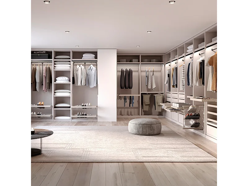 Kit cassetto organizzatore con telaio di guide a chiusura morbida per armadio, regolabile, modulo 600mm, Grigio pietra