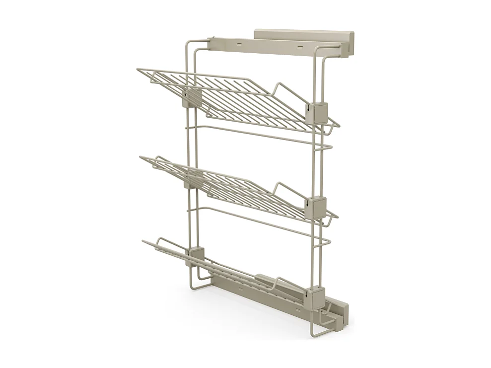 Scarpiera laterale estraibile per armadi e cabine armadio Hack, Destra, Verniciato grigio pietra, Acciaio.