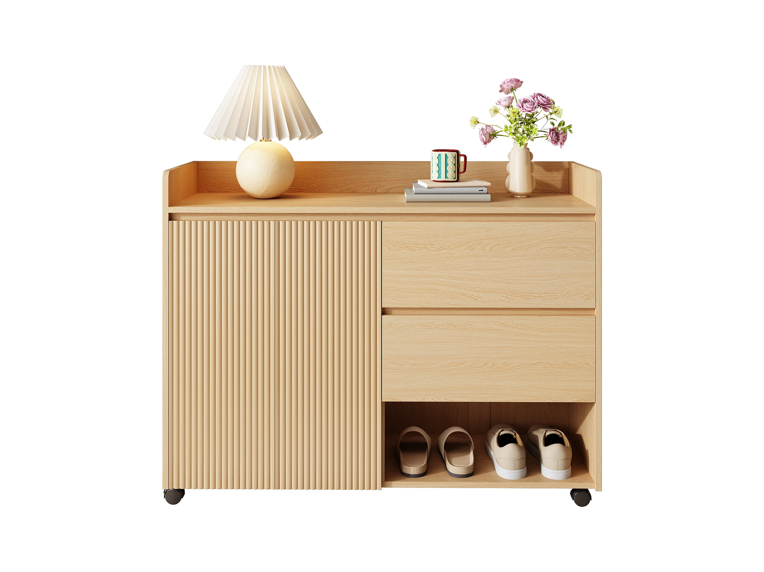 Scarpiera mobile, con ripiani regolabili, cassetti e ruote, MDF, naturale (110x35x86 cm)