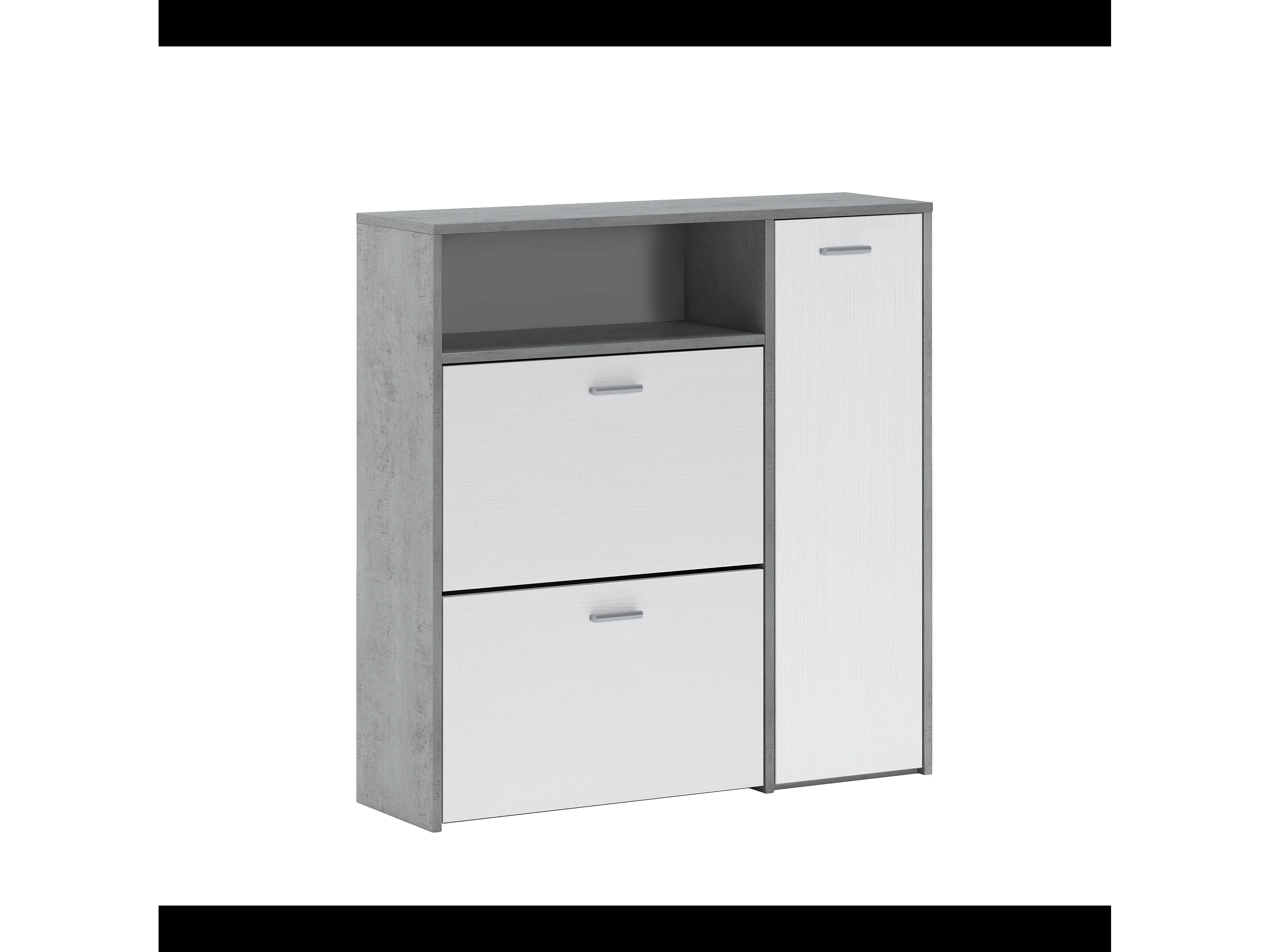 Scarpiera Mobile Portascarpe Salvaspazio Ingresso Con 2 Ribalte Doppia Profondità 4 Vani A Giorno Design Moderno 91.5x94x26.6 Cm Bianco Grigio Cemento