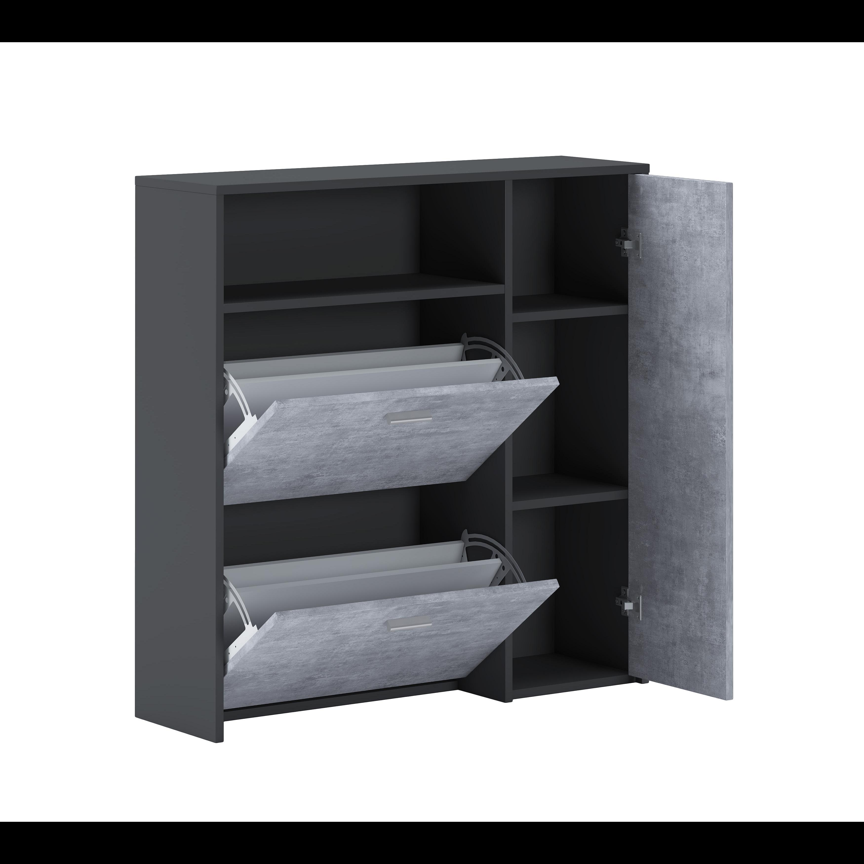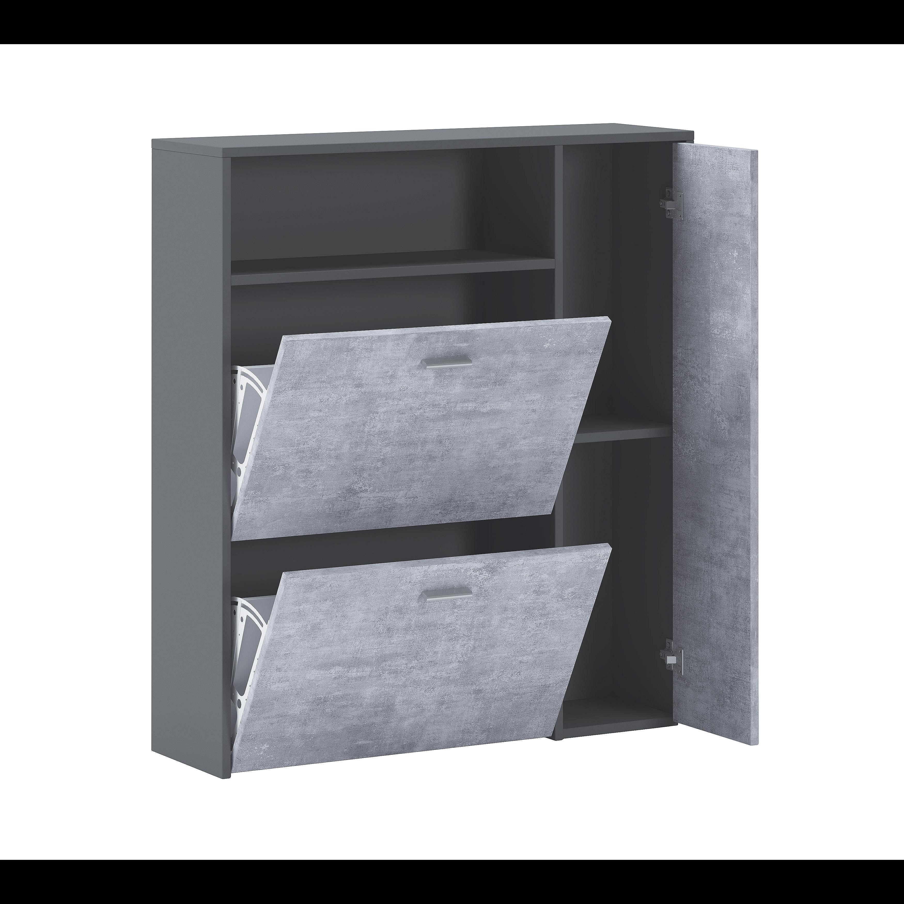 Scarpiera Mobile Portascarpe Salvaspazio Ingresso Con 2 Ribalte Doppia Profondit\u00e0 4 Vani A Giorno Design Moderno 91.5x94x26.6 Cm Grigio E Cemento