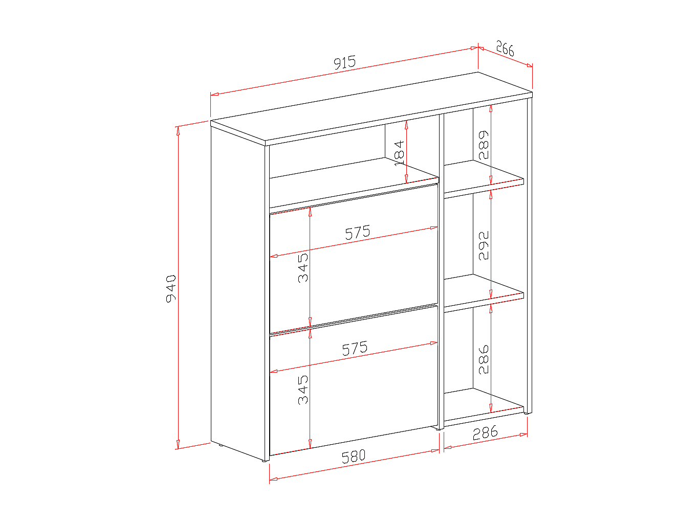 Scarpiera 3 ante L 120 x H 108 x P 26.5 cm 24 paia, grigio