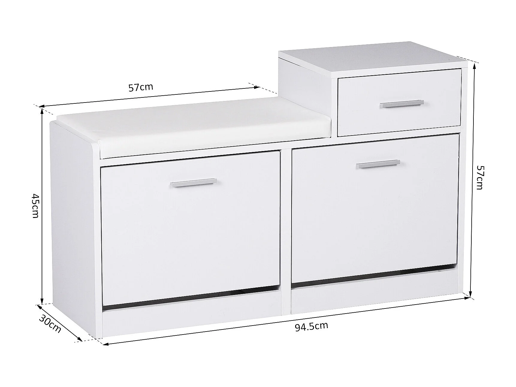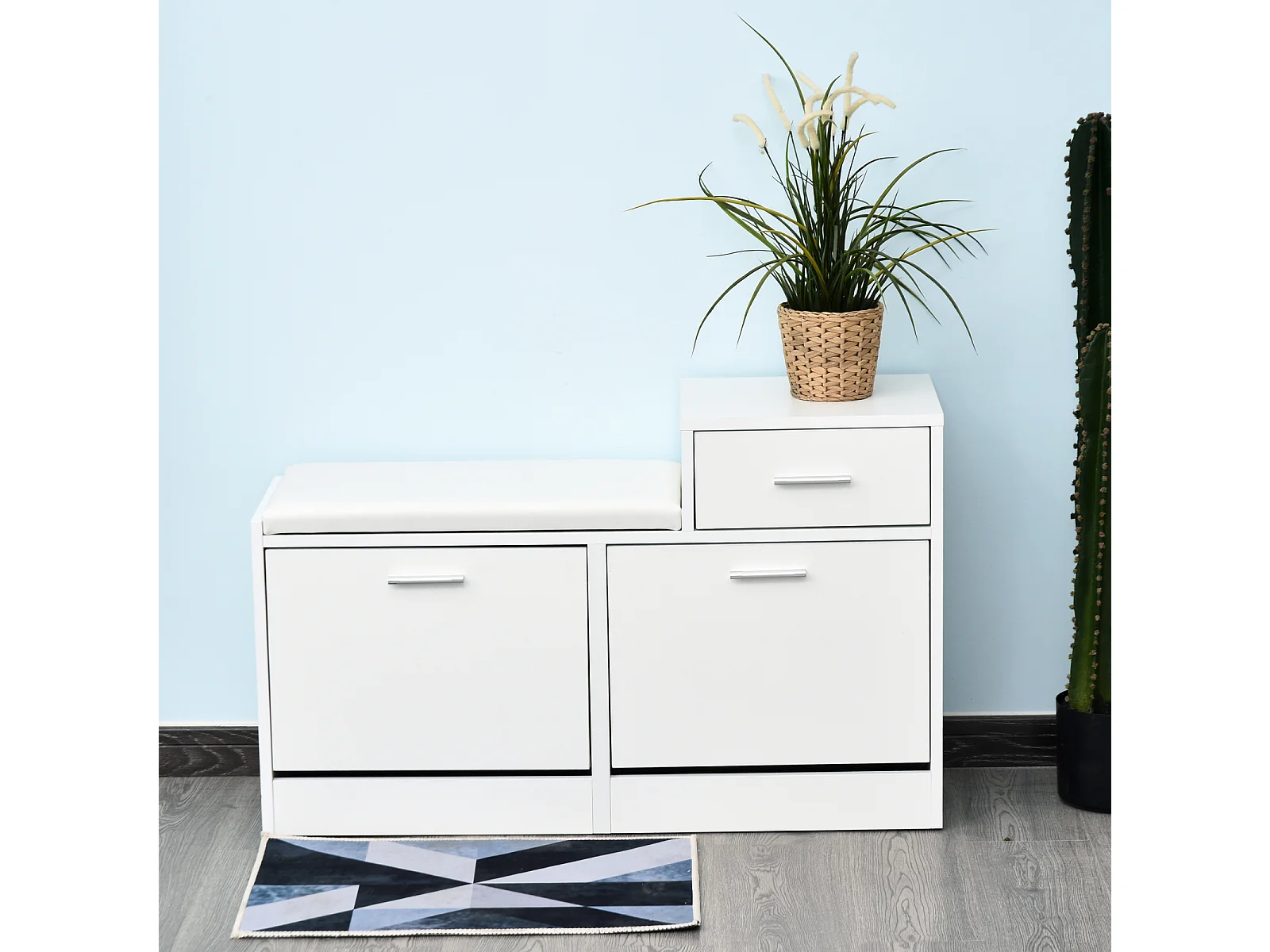 Scarpiera moderna da ingresso con panca imbottita in legno bianco