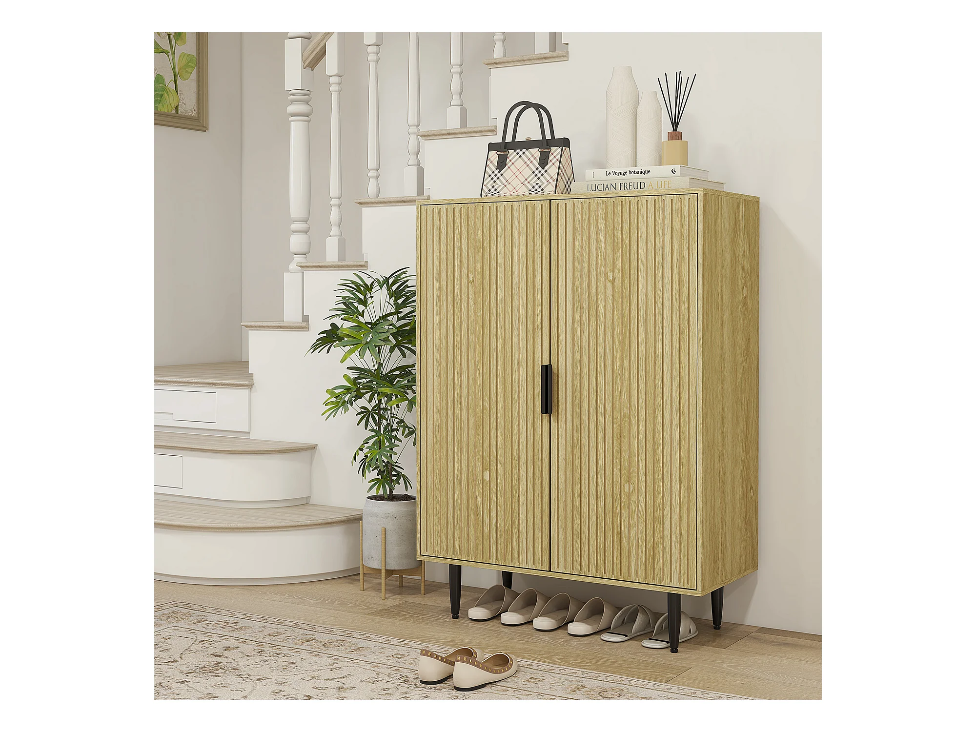 Scarpiera Valdosta, Portascarpe salvaspazio a 2 ante, Scarpiera da ingresso , Armadio scarpiera, 50x22h76 cm, Rovere