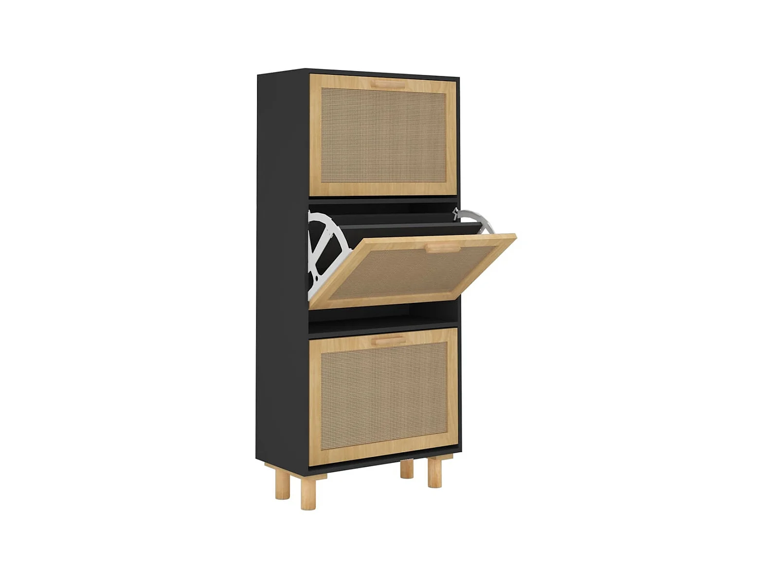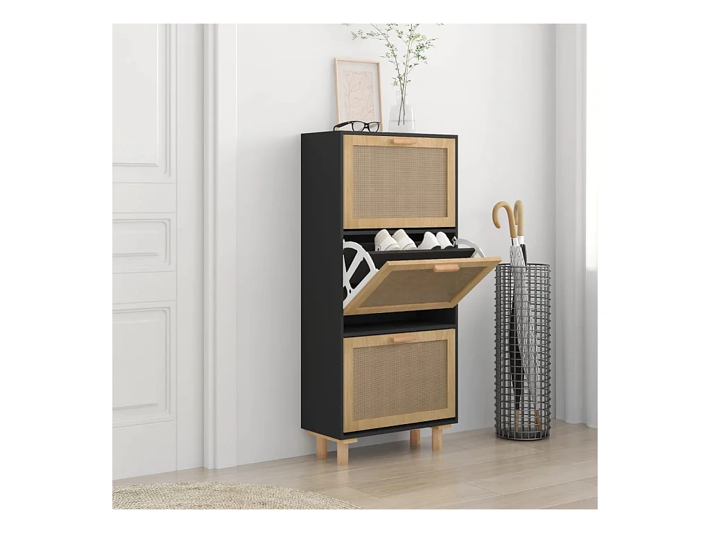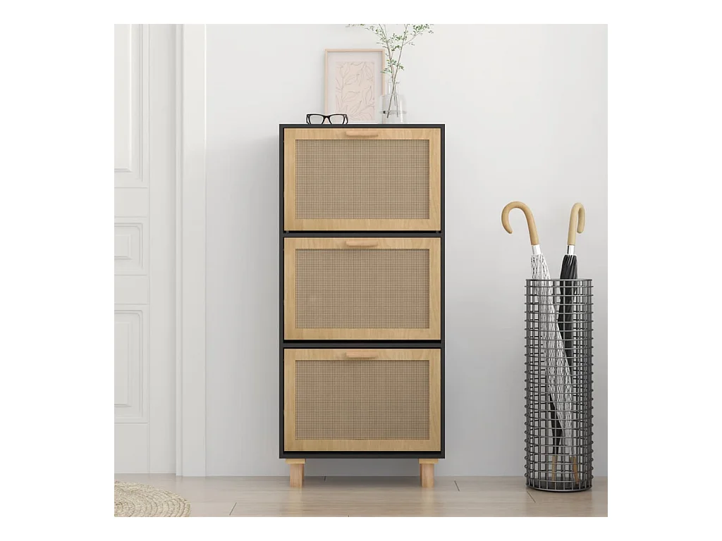 Scarpiera Nera 52x25x115 cm MDF/rattan