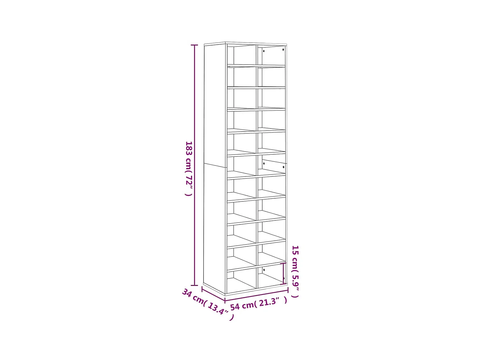 Scarpiera in rovere nero 54x34x183 cm in legno ingegnerizzato