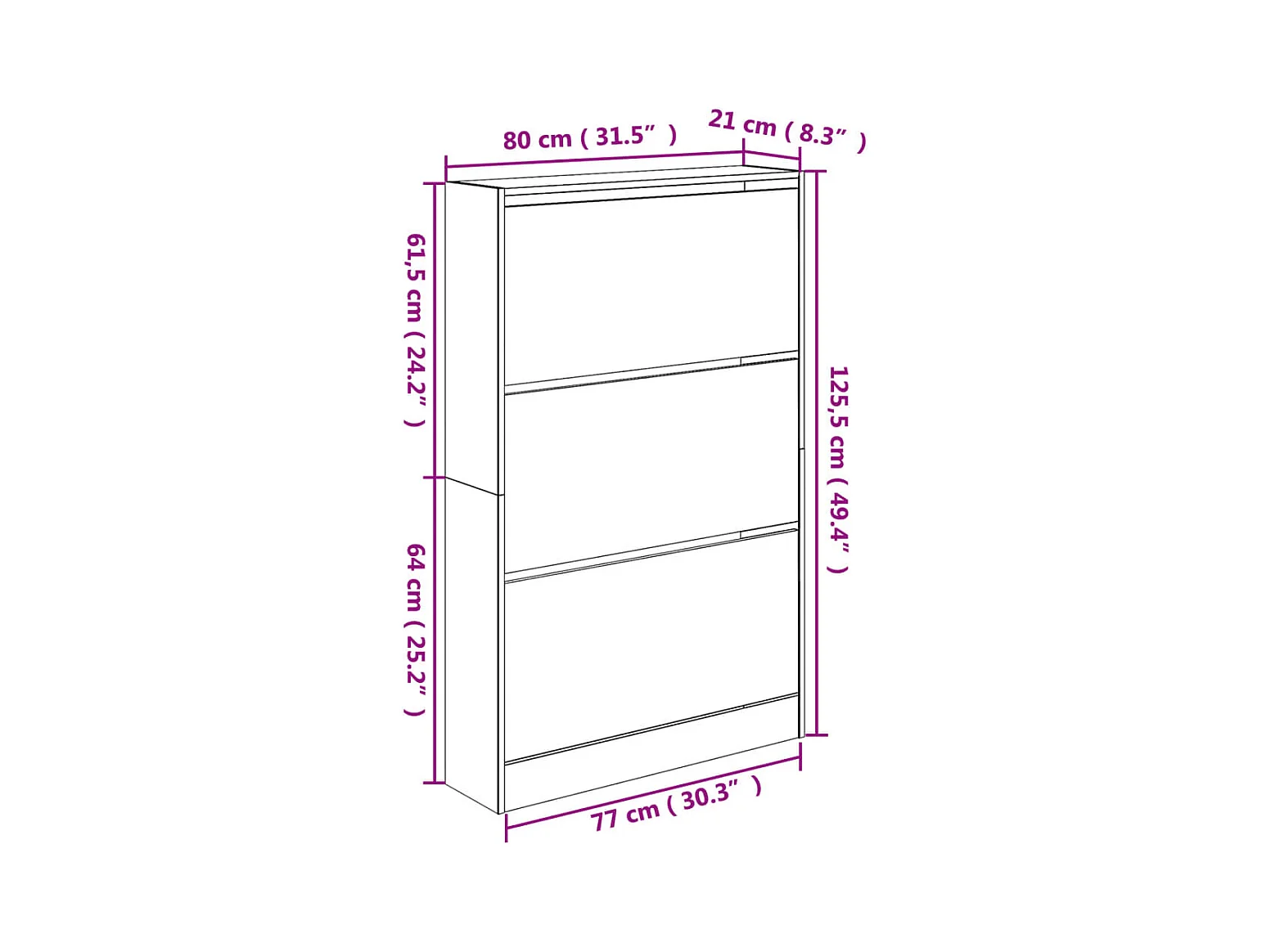 Scarpiera in rovere nero 80x21x125,5 cm in legno ingegnerizzato
