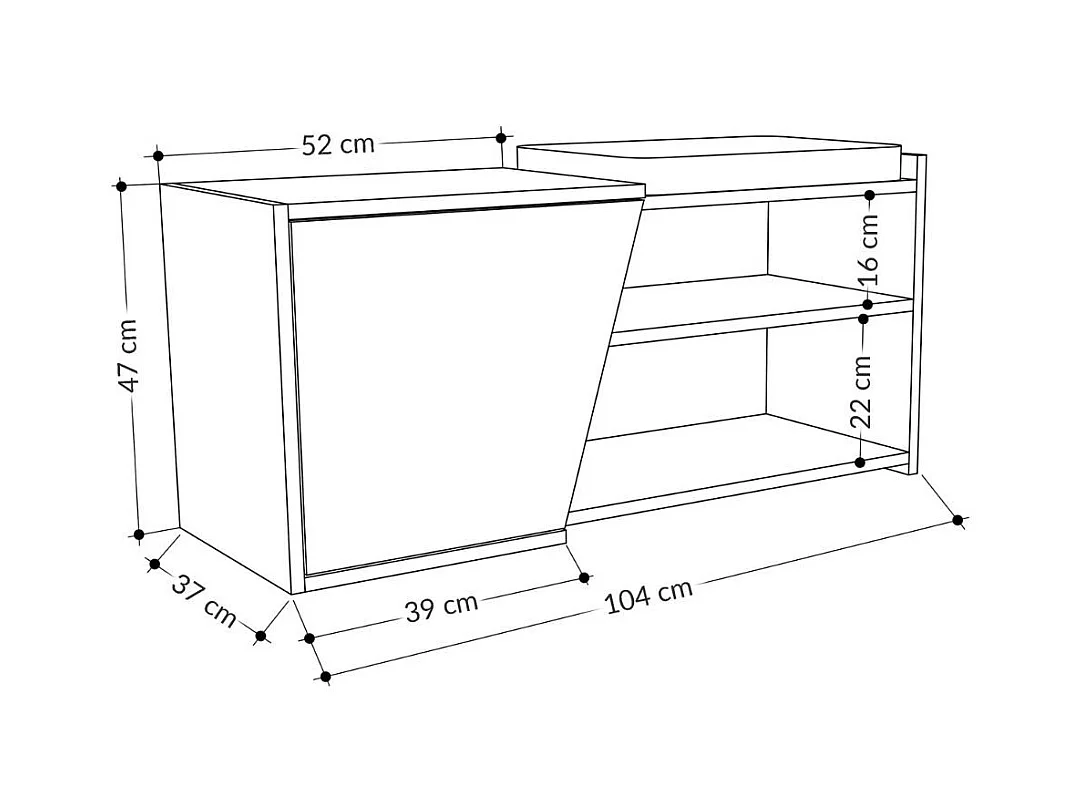 Panca scarpiera con anta e ripiani Sunno bianco 100x35x44