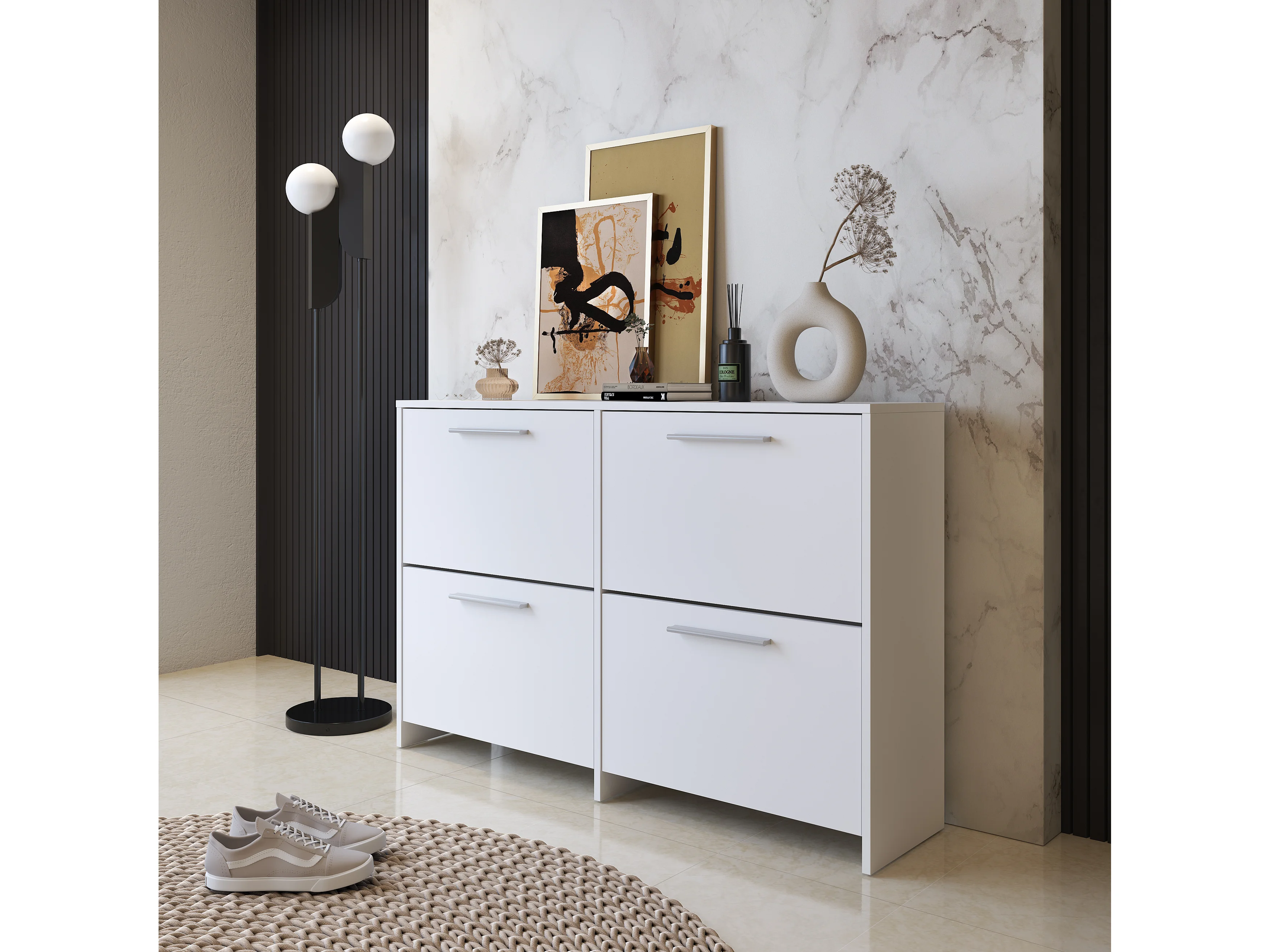Scarpiera salvaspazio 4 Ante A Ribalta Moderna Maniglie In Alluminio Mobile Ingresso Slim Salvaspazio Per Scarpe Design Minimal Bassa 79.4 x 120 x 28 Cm Bianco