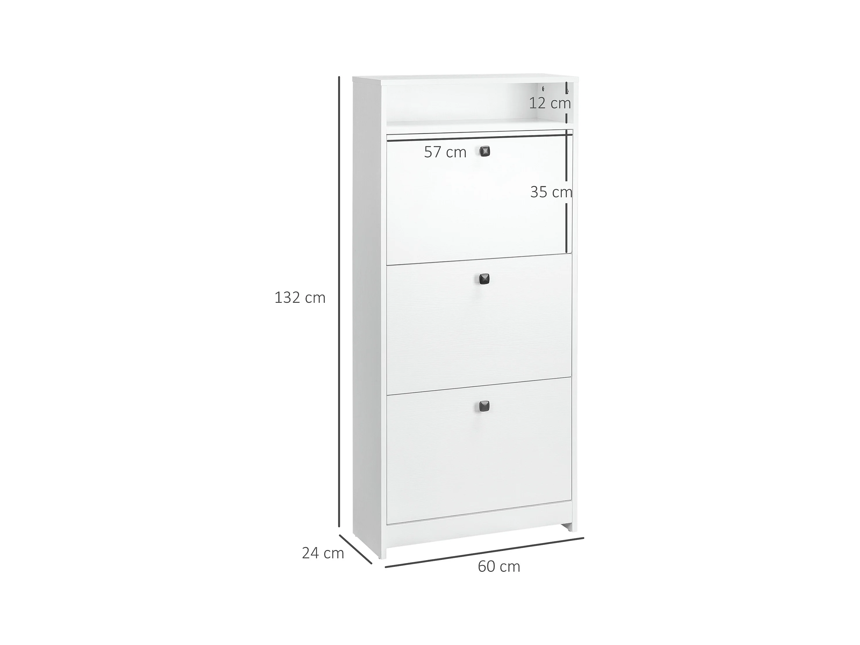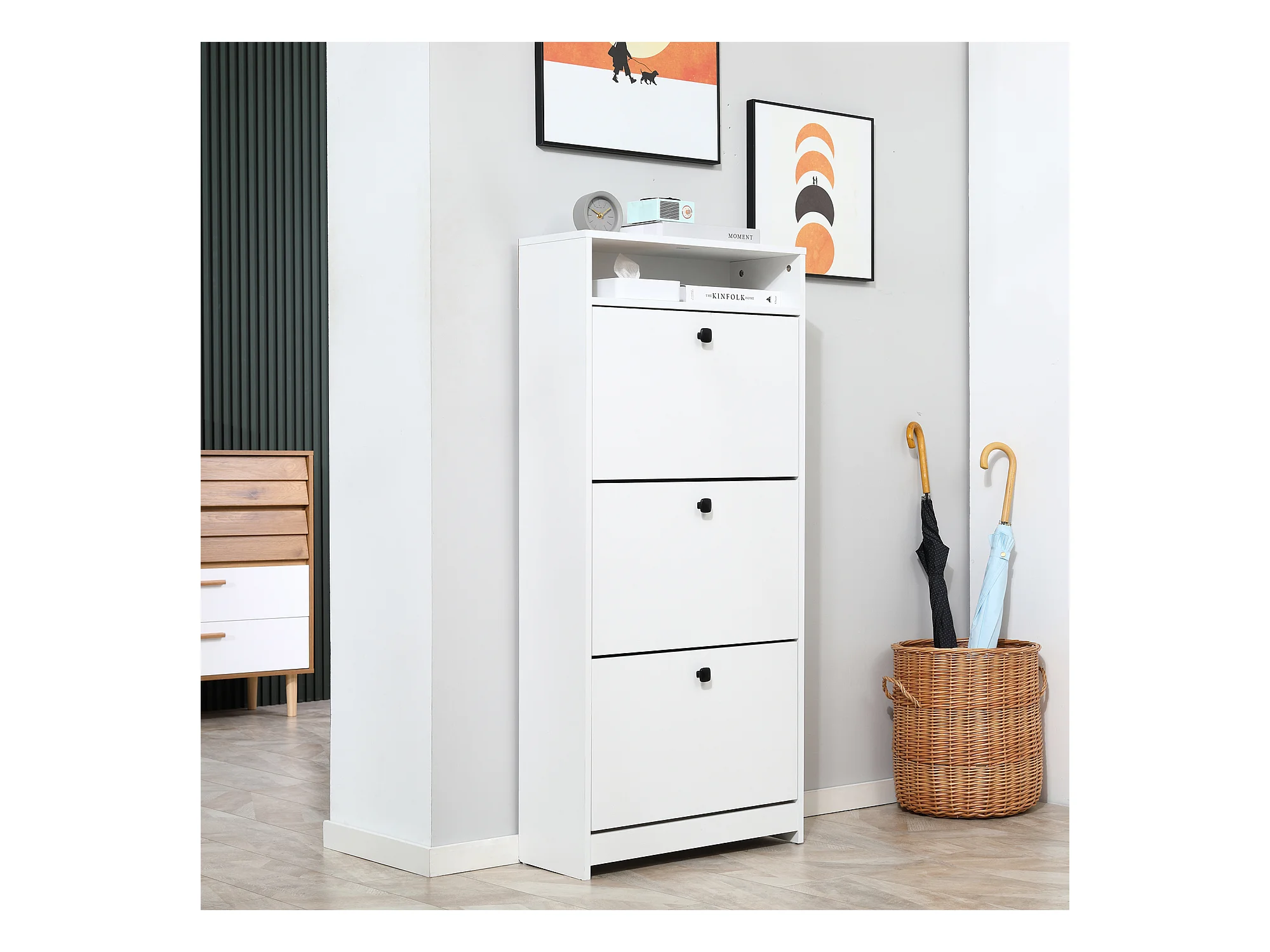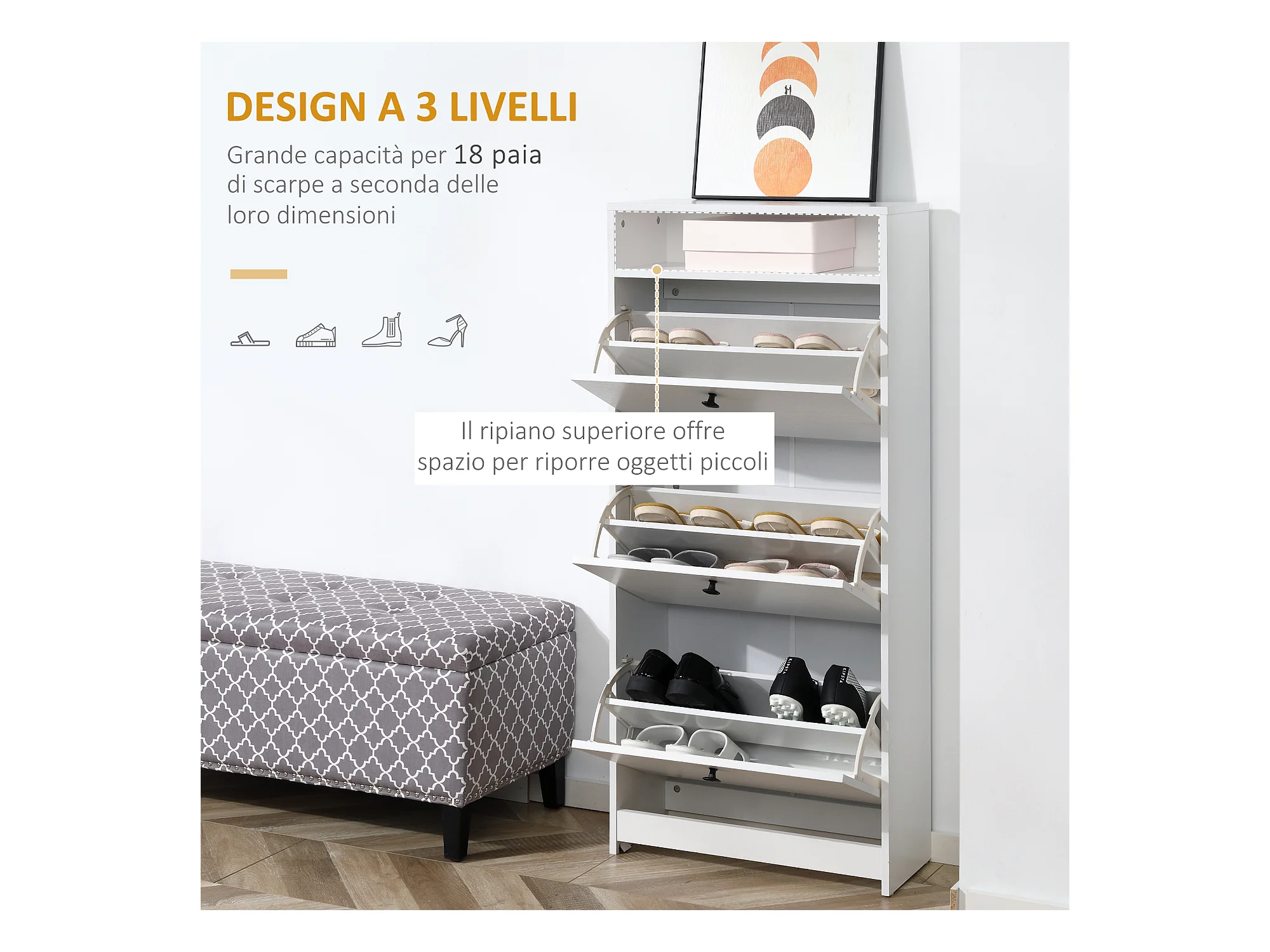 Scarpiera salvaspazio a 3 ante per 18 paia di scarpe in legno bianco