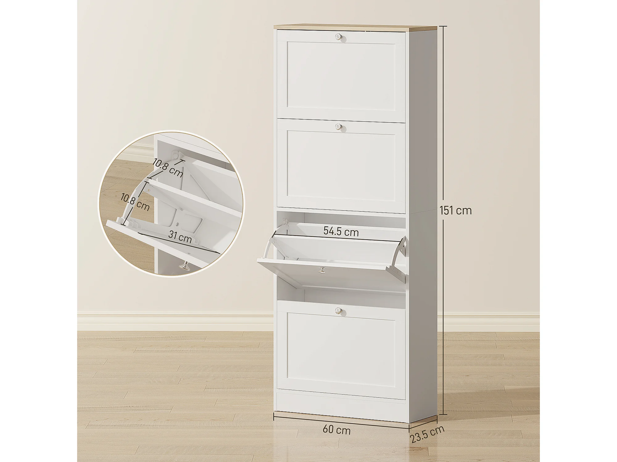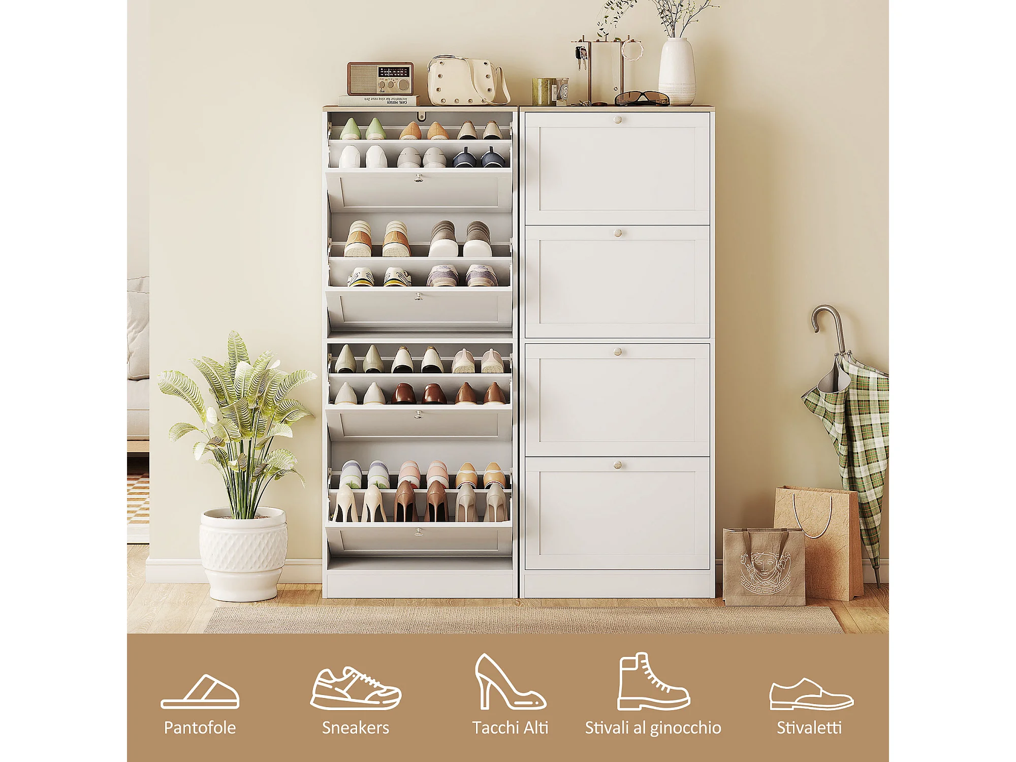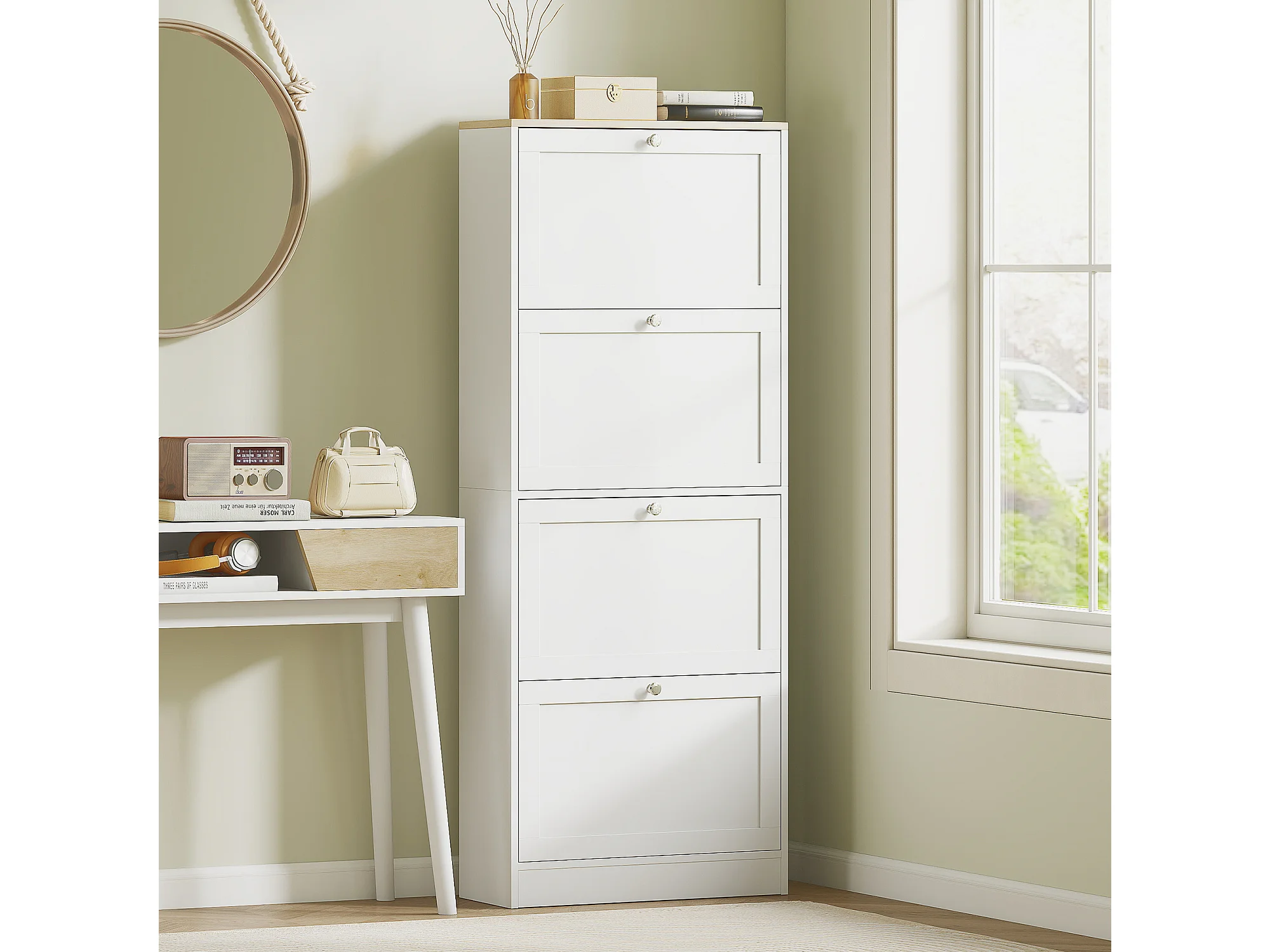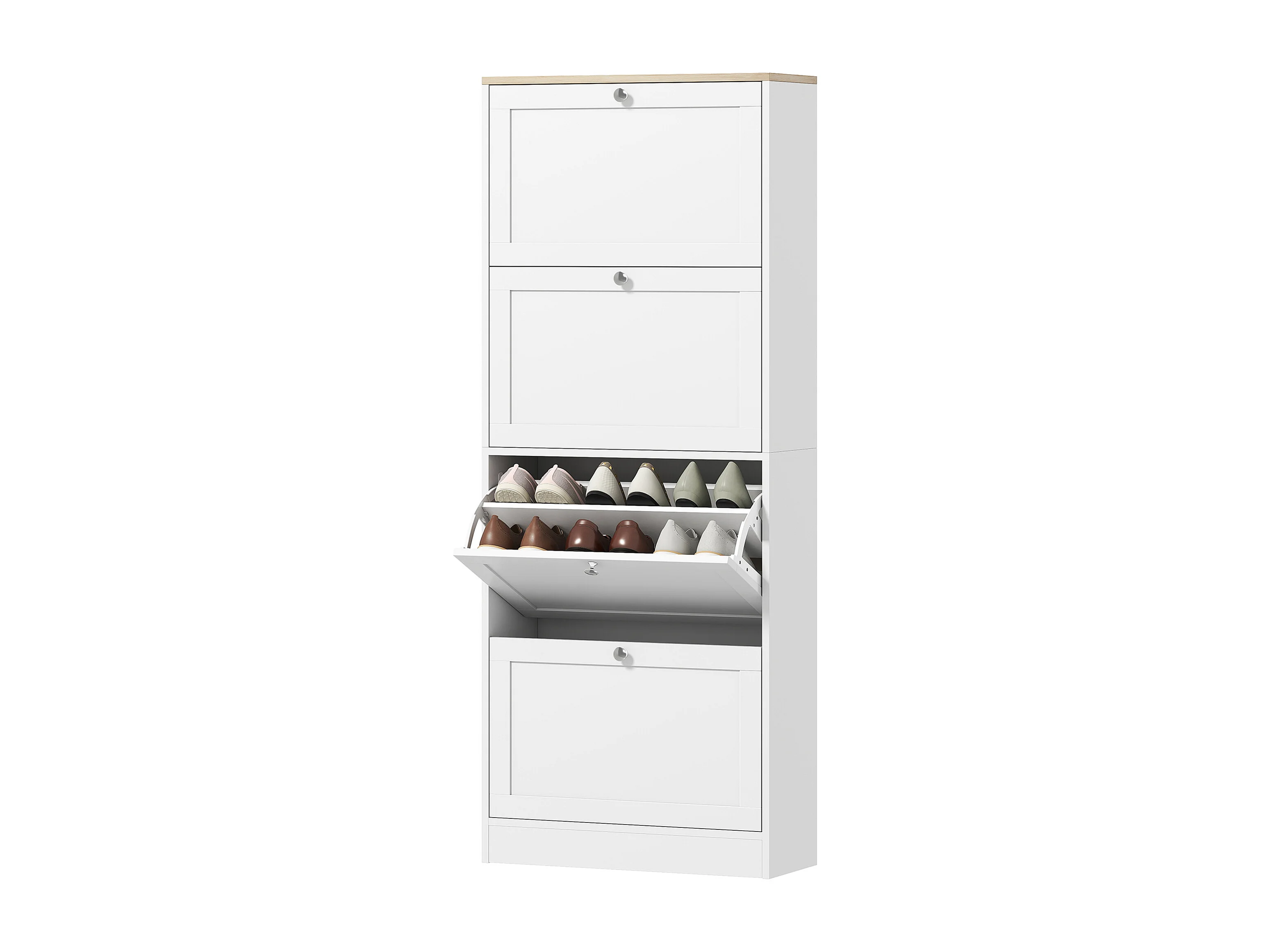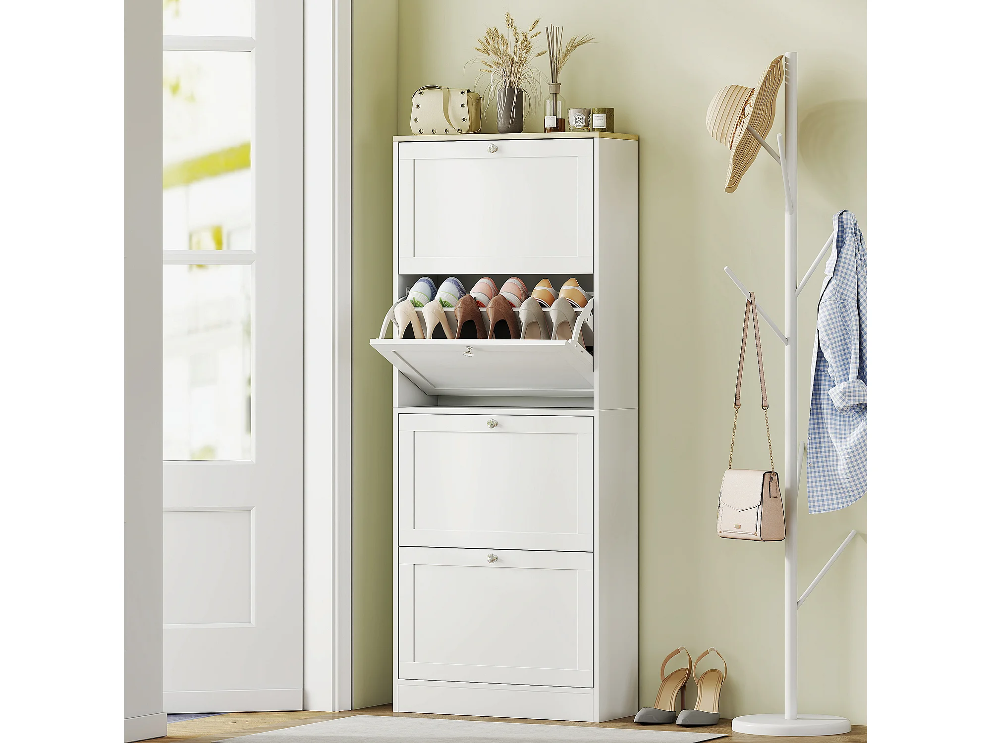 Scarpiera slim con 4 cassetti a ribalta per 24-32 scarpe bianco