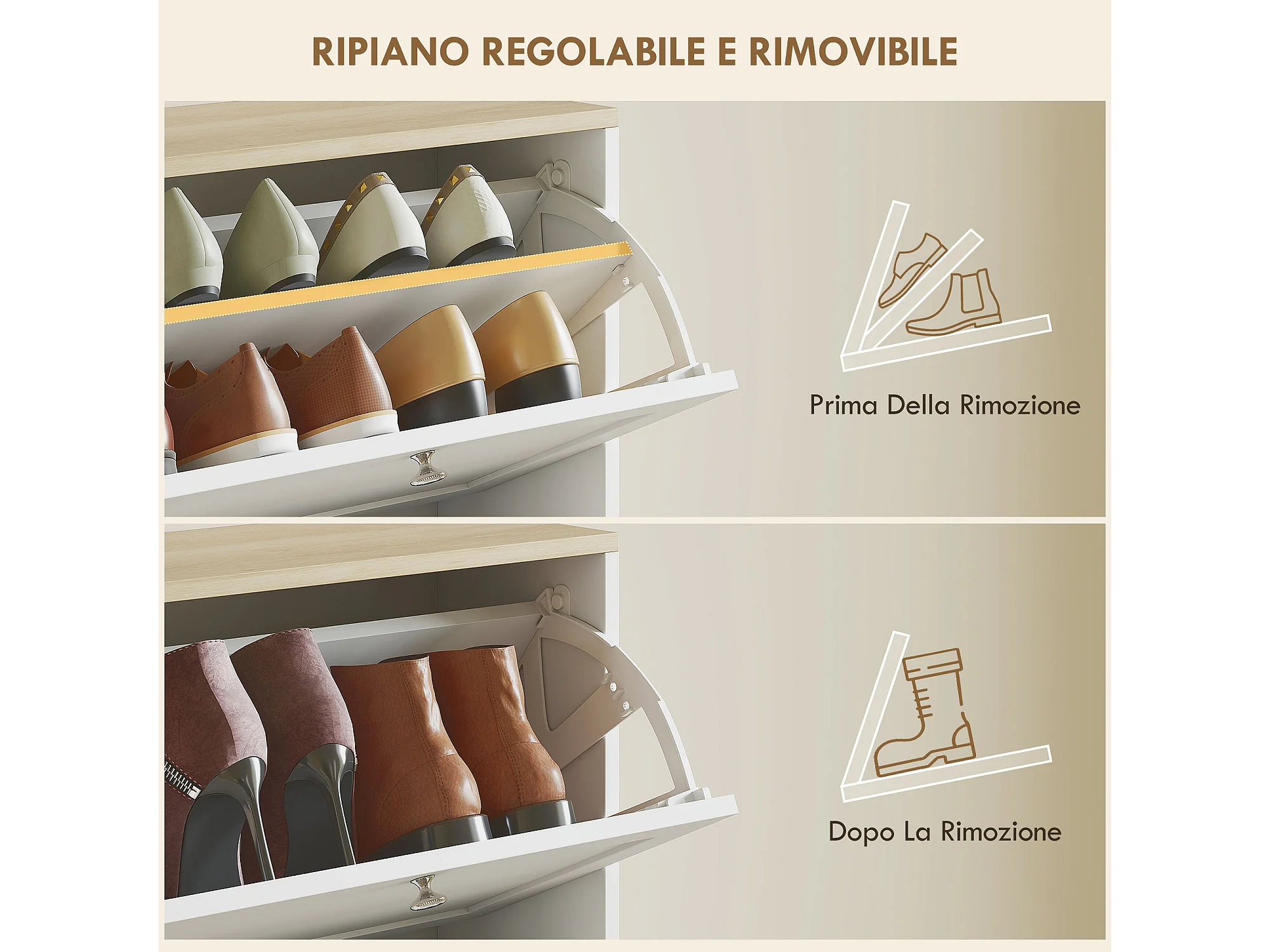Scarpiera salvaspazio a 4 cassetti con ripiani regolabili bianco