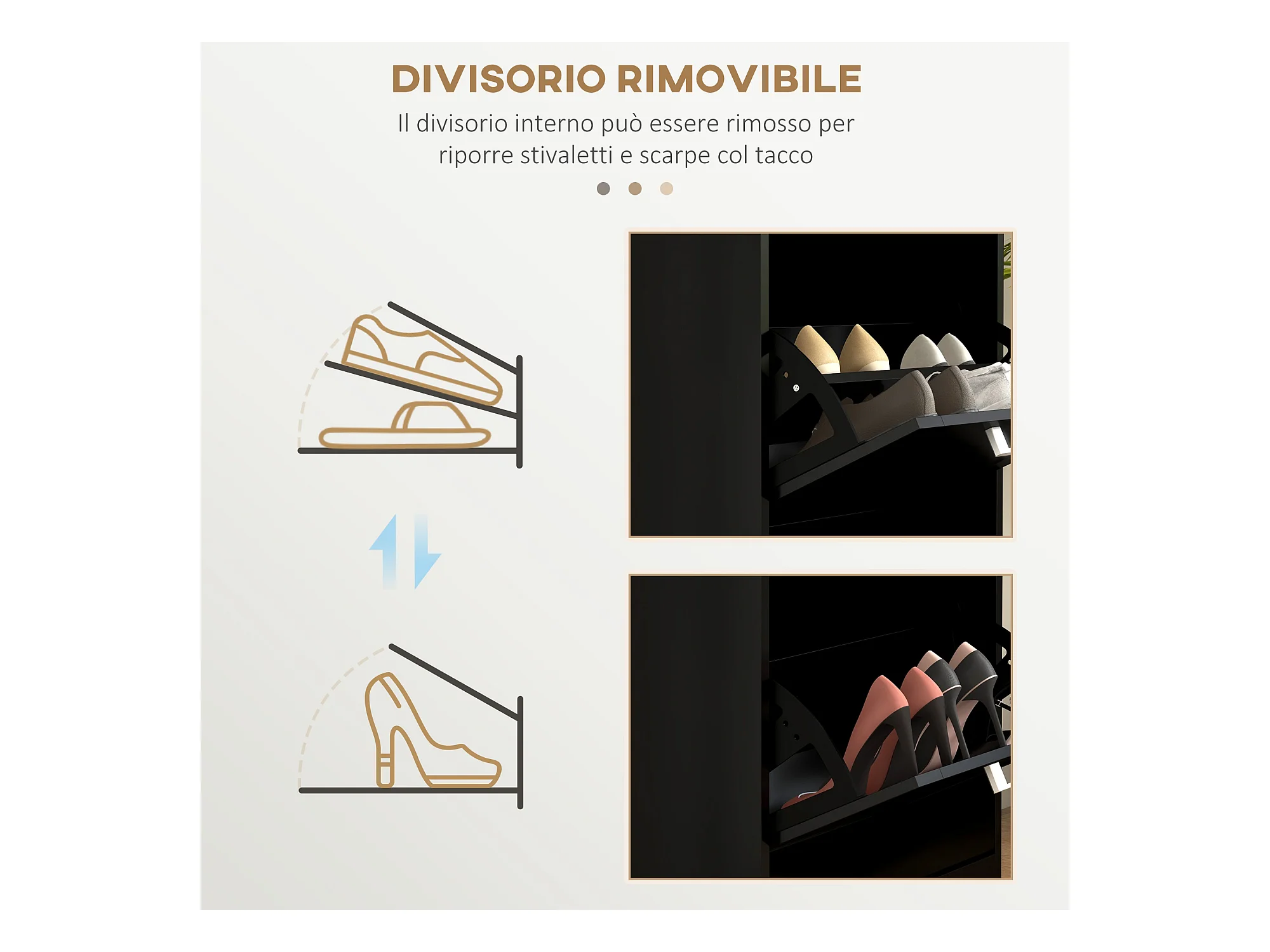 Scarpiera Larry, 12 Paia, 24.05x70.3x85.2h cm Nero, Mobile Portascarpe