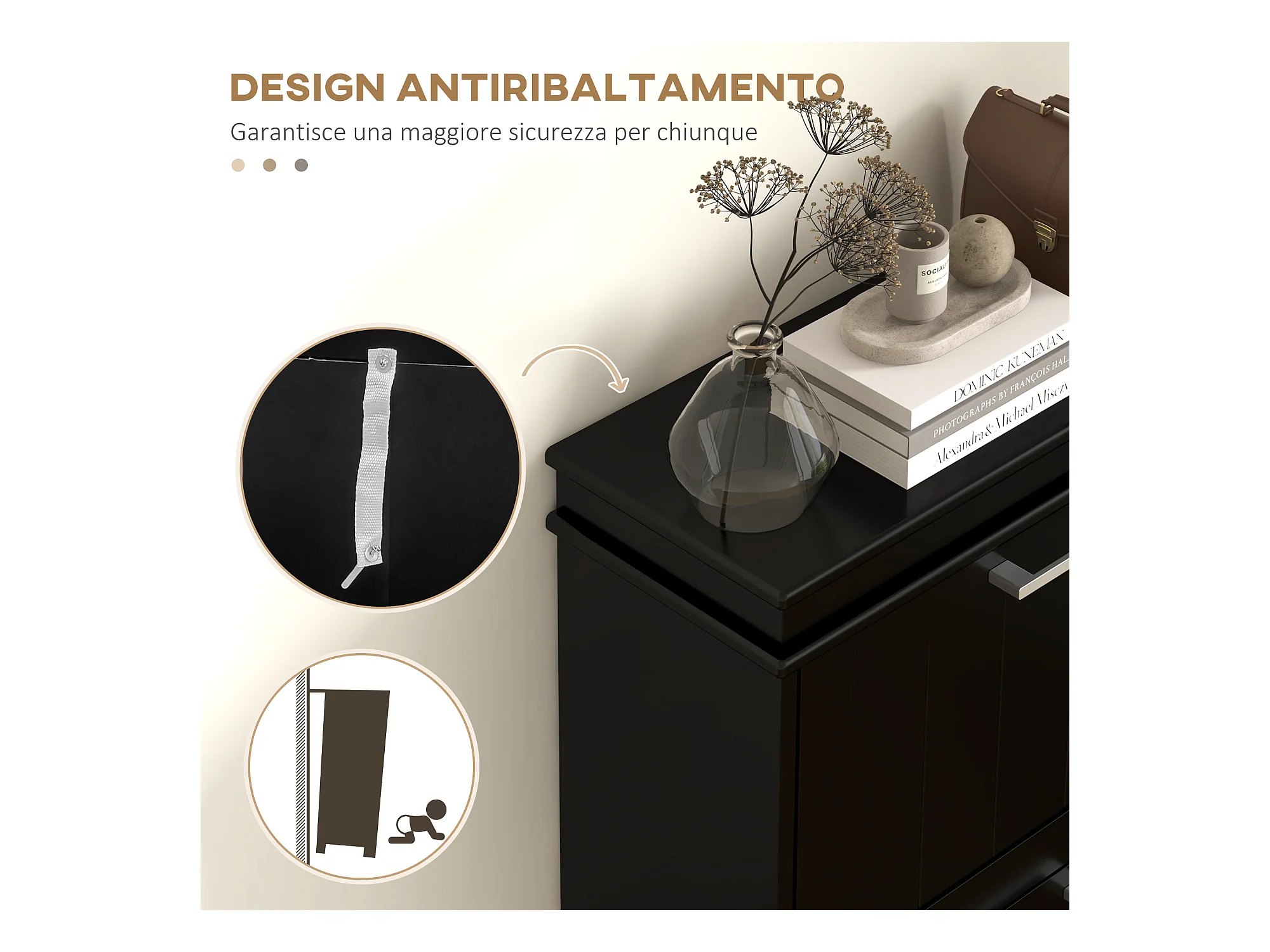 Scarpiera moderna con 2 ripiani regolabili e 2 cassetti in legno nero