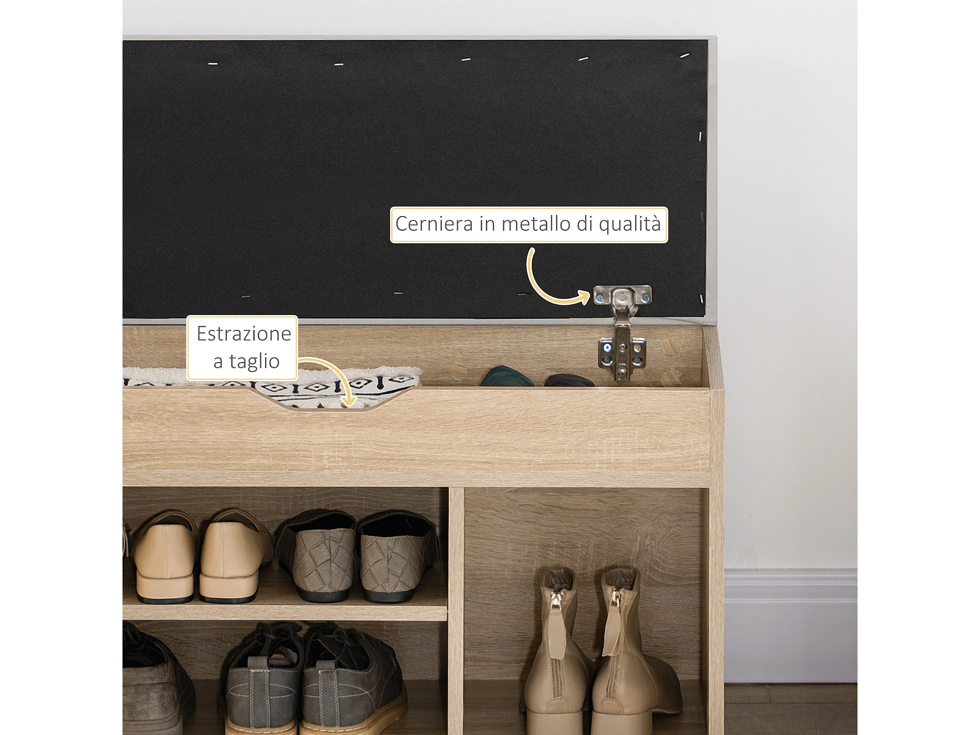 Panca scarpiera da ingresso con ripiano nascosto e seduta imbottita