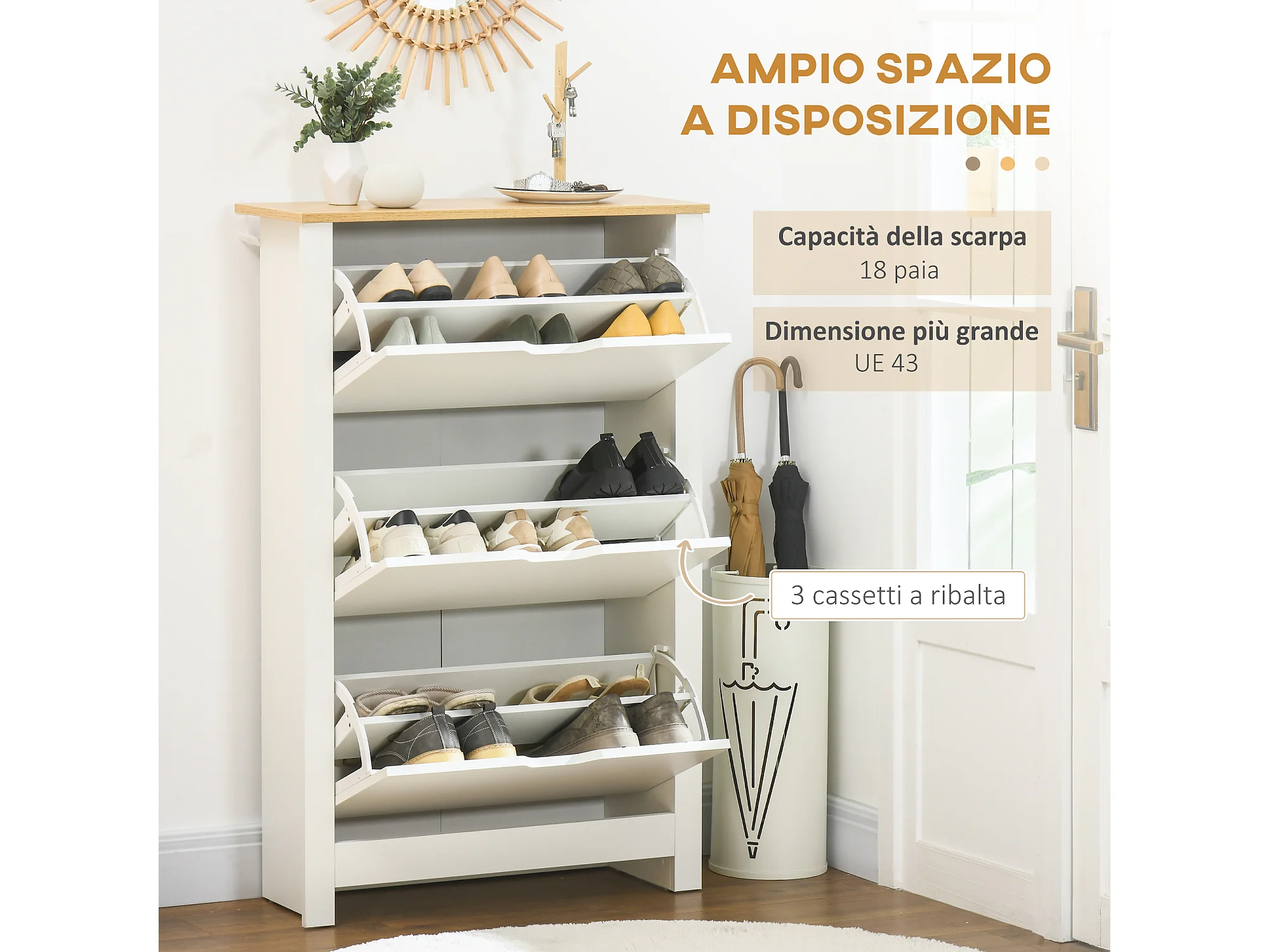 Scarpiera salvaspazio slim con 3 ante a ribalta
