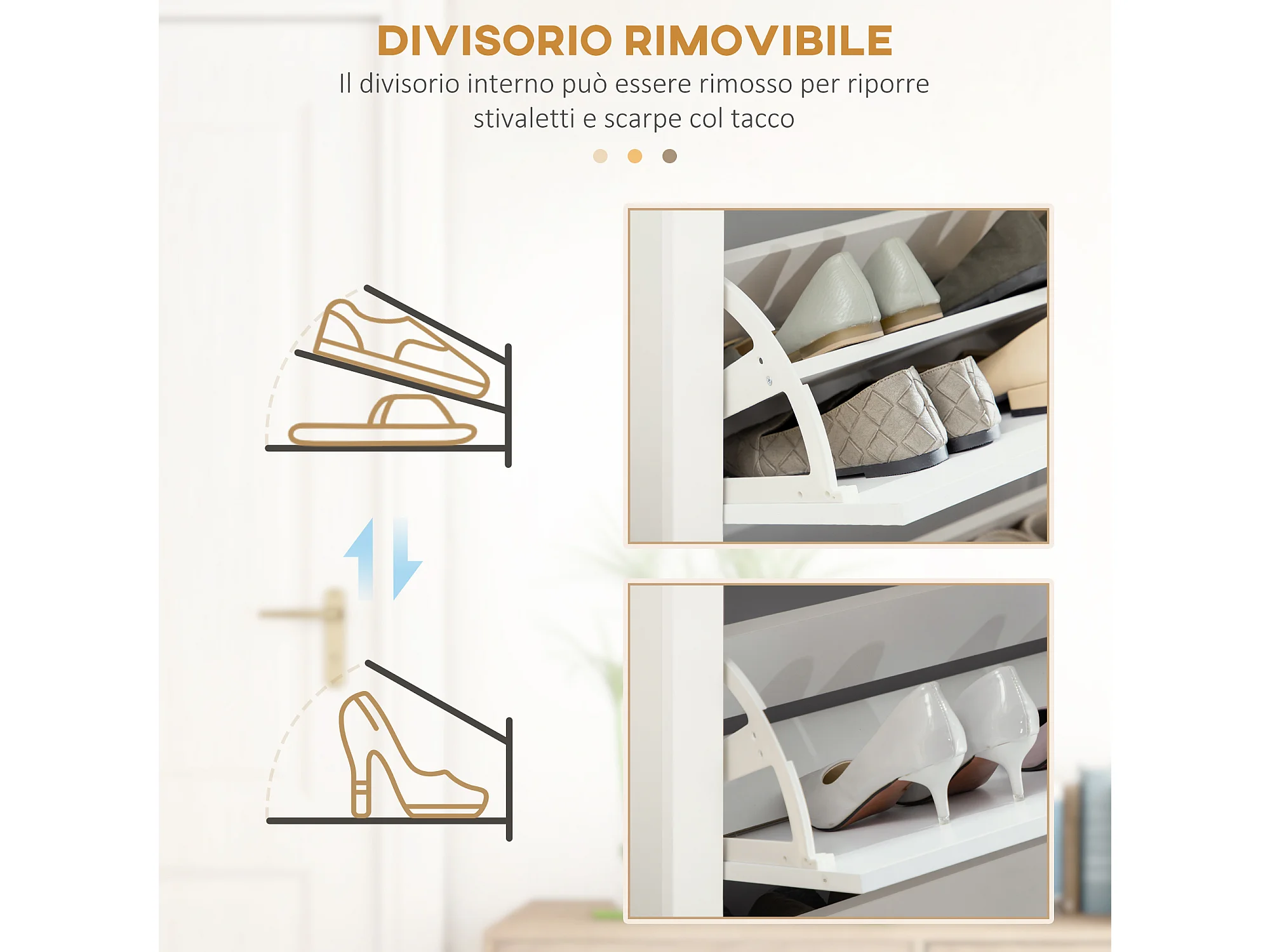 Scarpiera salvaspazio slim con 2 ante a ribalta scarpiera ingresso con ripiani regolabili