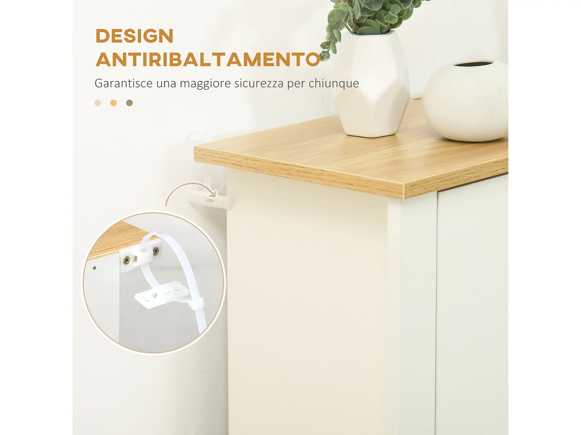 Mobile scarpiera in legno bianco con 2 ante cassetto e ripiano