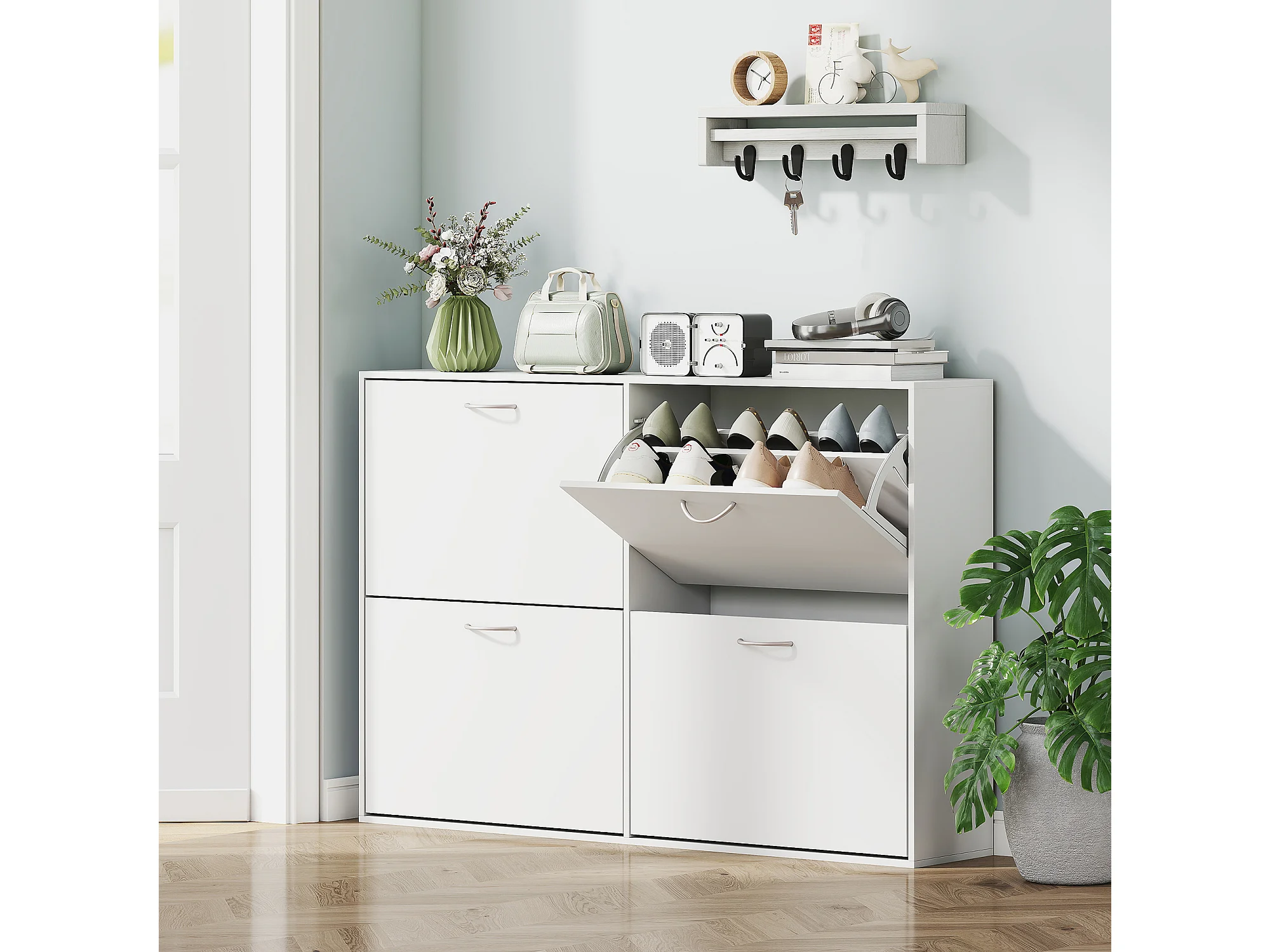Scarpiera Mobile Portascarpe Salvaspazio Ingresso Con 2 Ribalte Doppia Profondità 4 Vani A Giorno Design Moderno 91.5x94x26.6 Cm Bianco Grigio Cemento