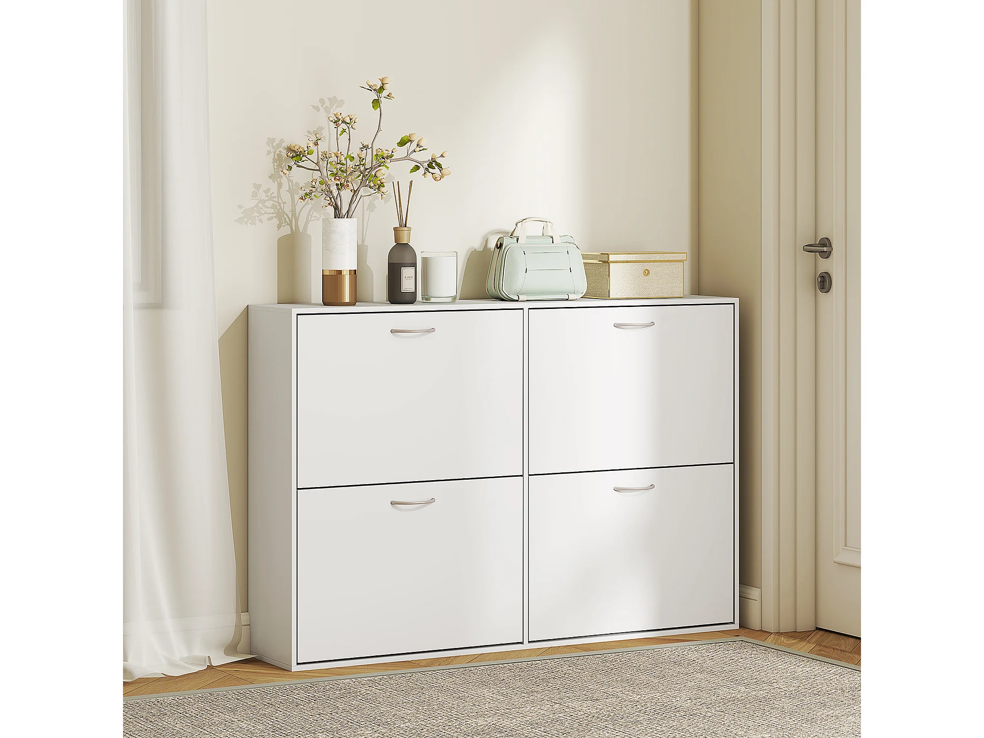 Scarpiera salvaspazio slim in legno per 16-24 paia con 4 ante bianco