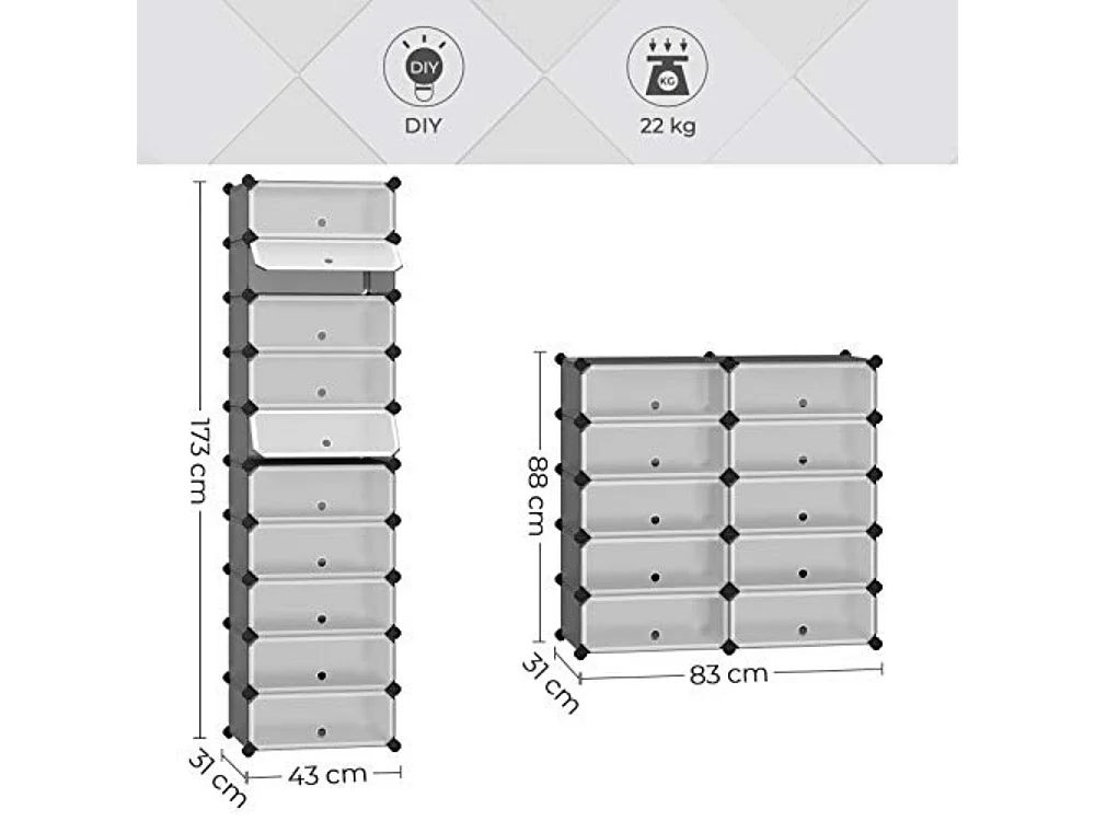 Scarpiera scatola per scarpe 10 scomparti modulari porta scarpe ogni armadietto 40 x 30 x 17 cm griglia metallica grigia 12_0003677