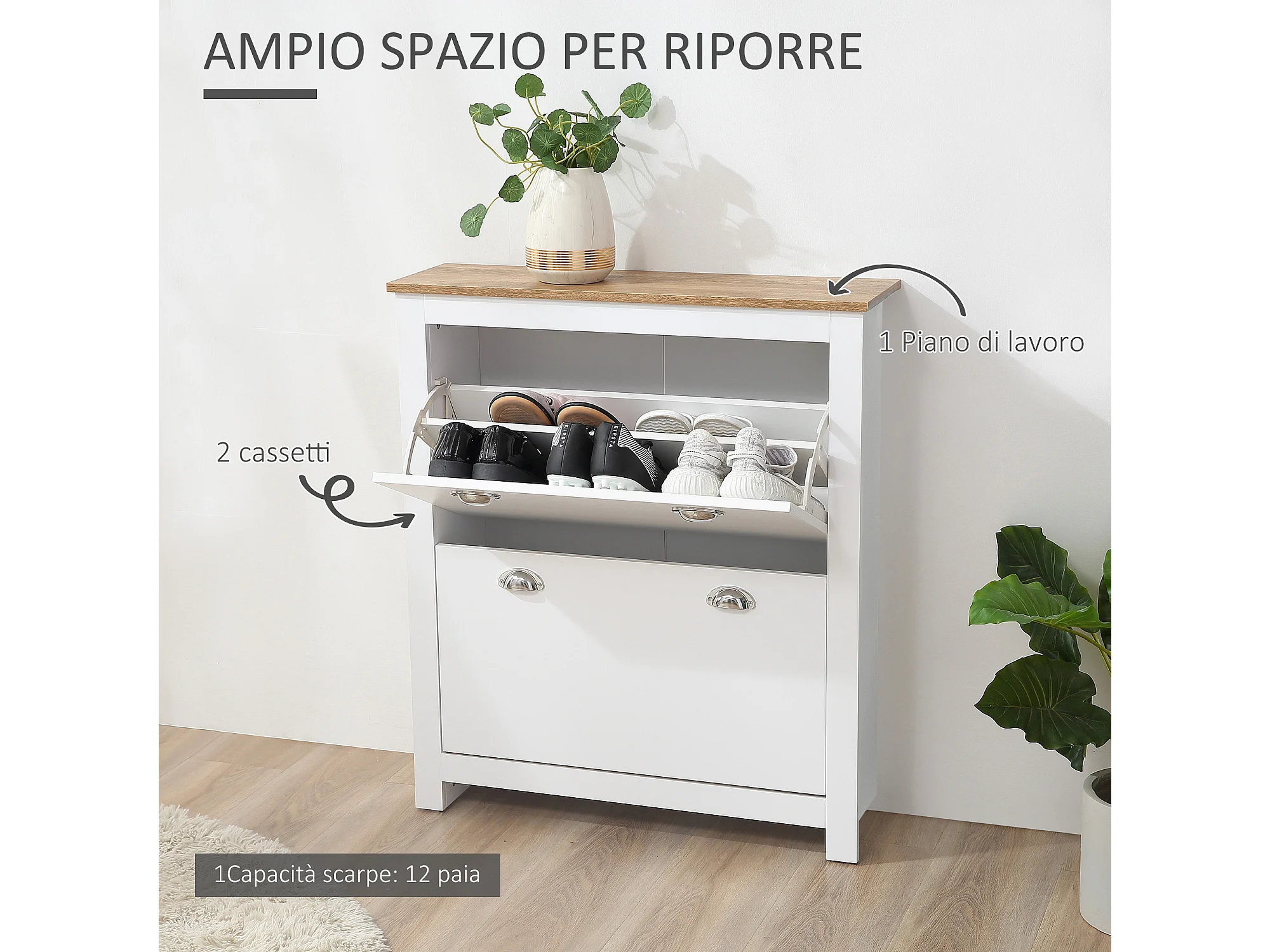 Scarpiera salvaspazio con 2 cassetti per 10 paia di scarpe bianco