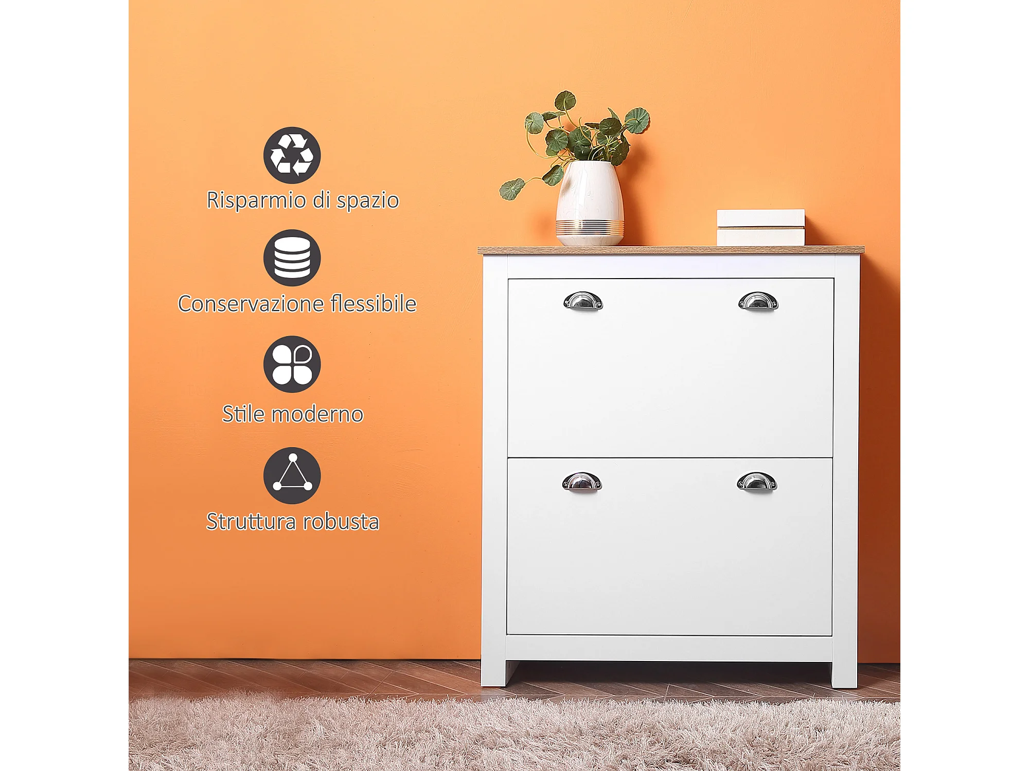 Mobile scarpiera salvaspazio con ripiano aperto bianco