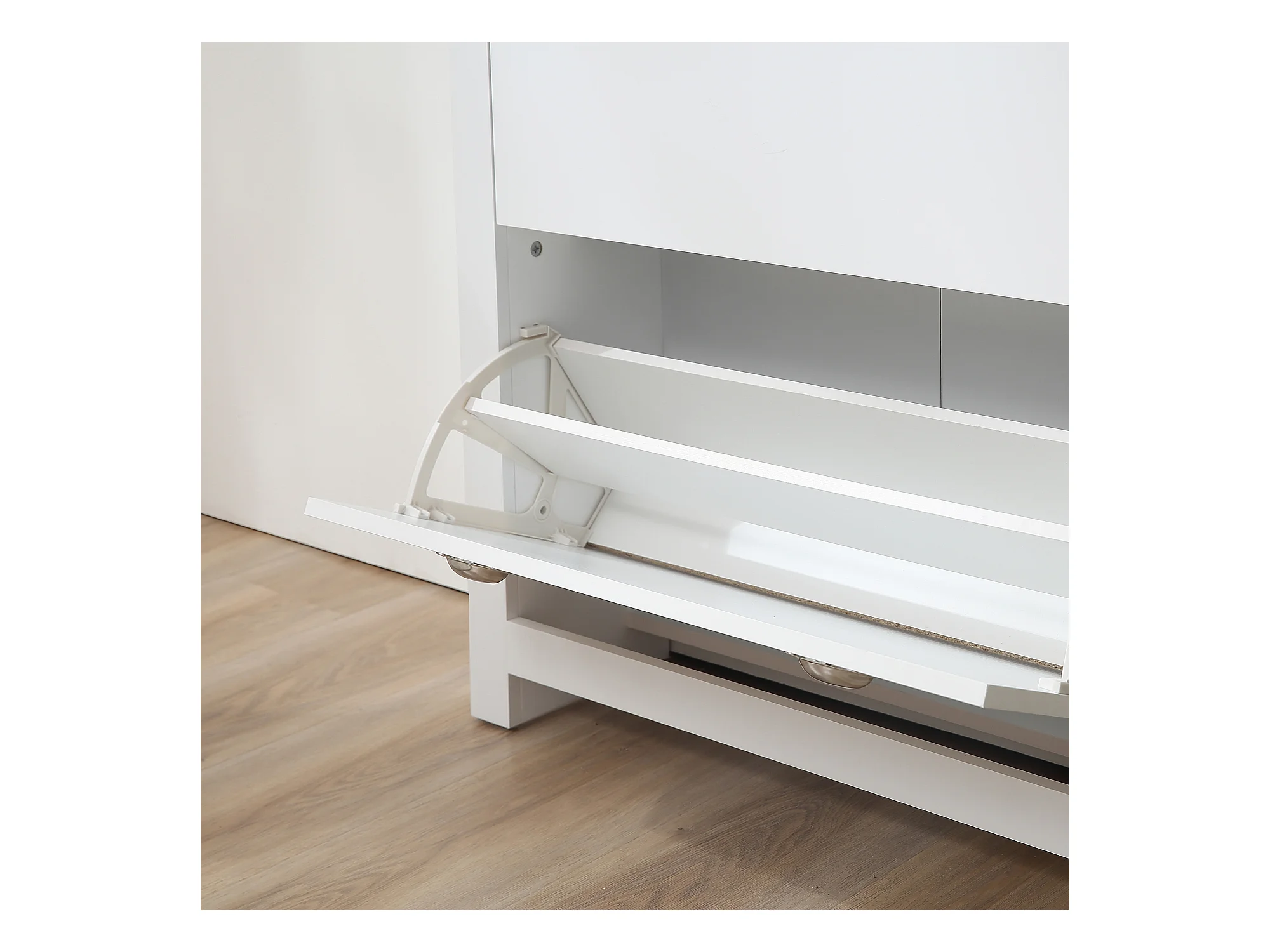 Scarpiera slim con 4 cassetti a ribalta e 2 cassetti scorrevoli bianco
