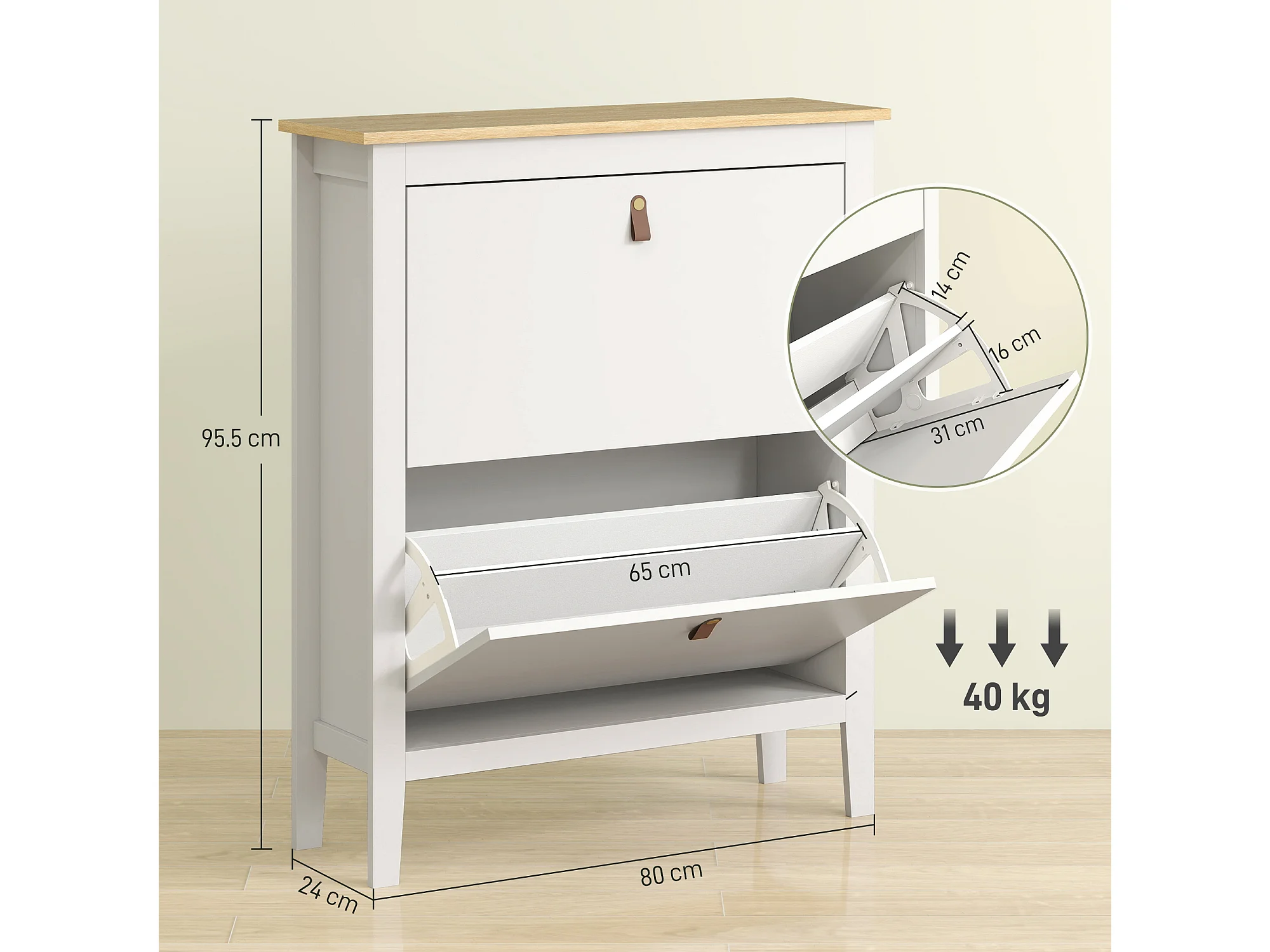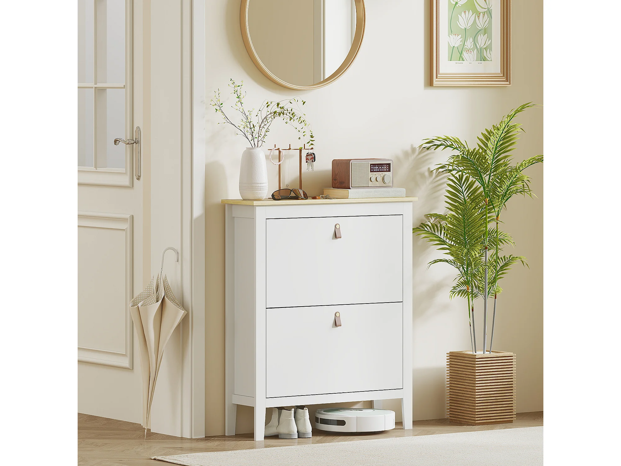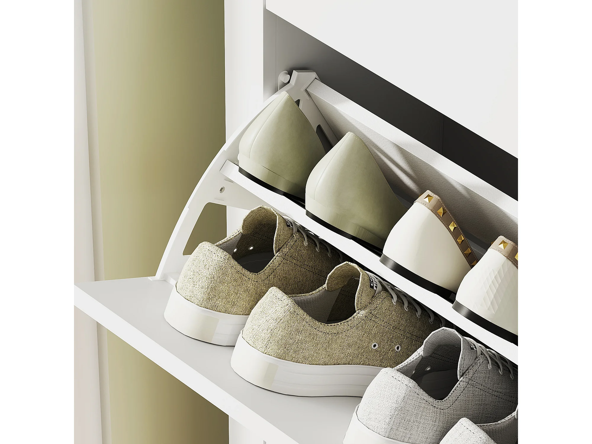 Scarpiera slim a 2 cassetti per 14 paia di scarpe regolabile bianco