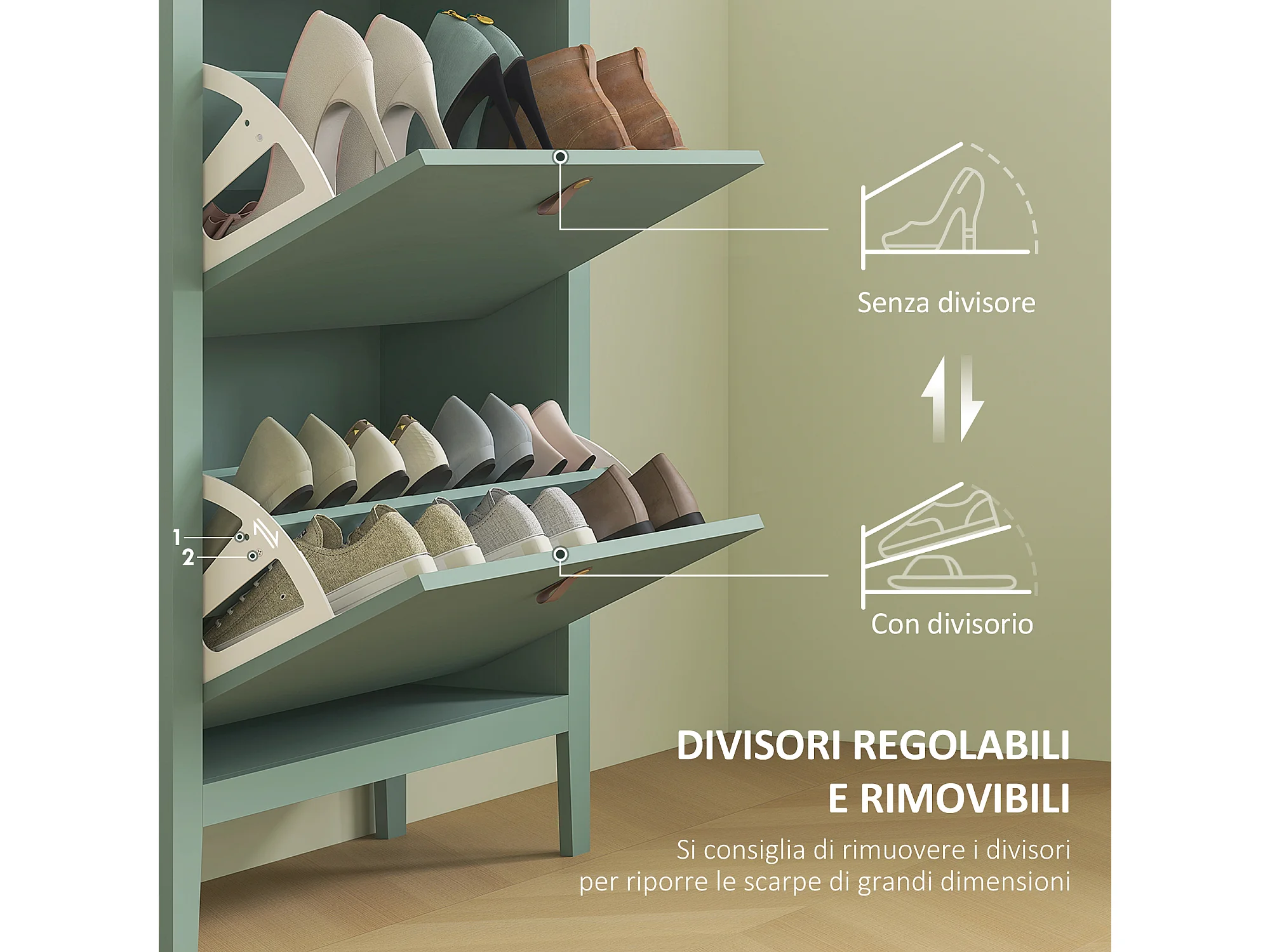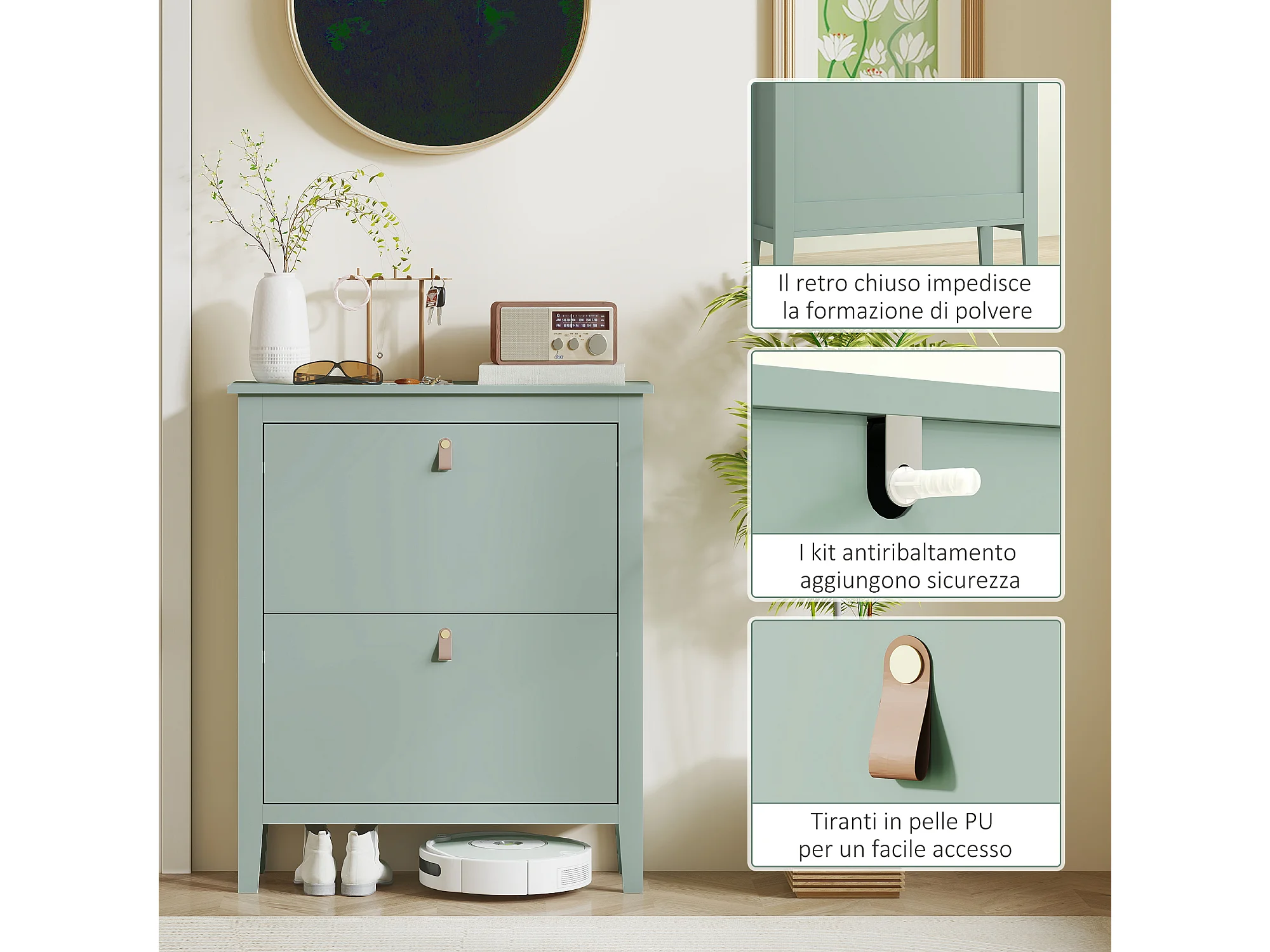 Scarpiera slim a 2 cassetti per 14 paia di scarpe regolabile verde
