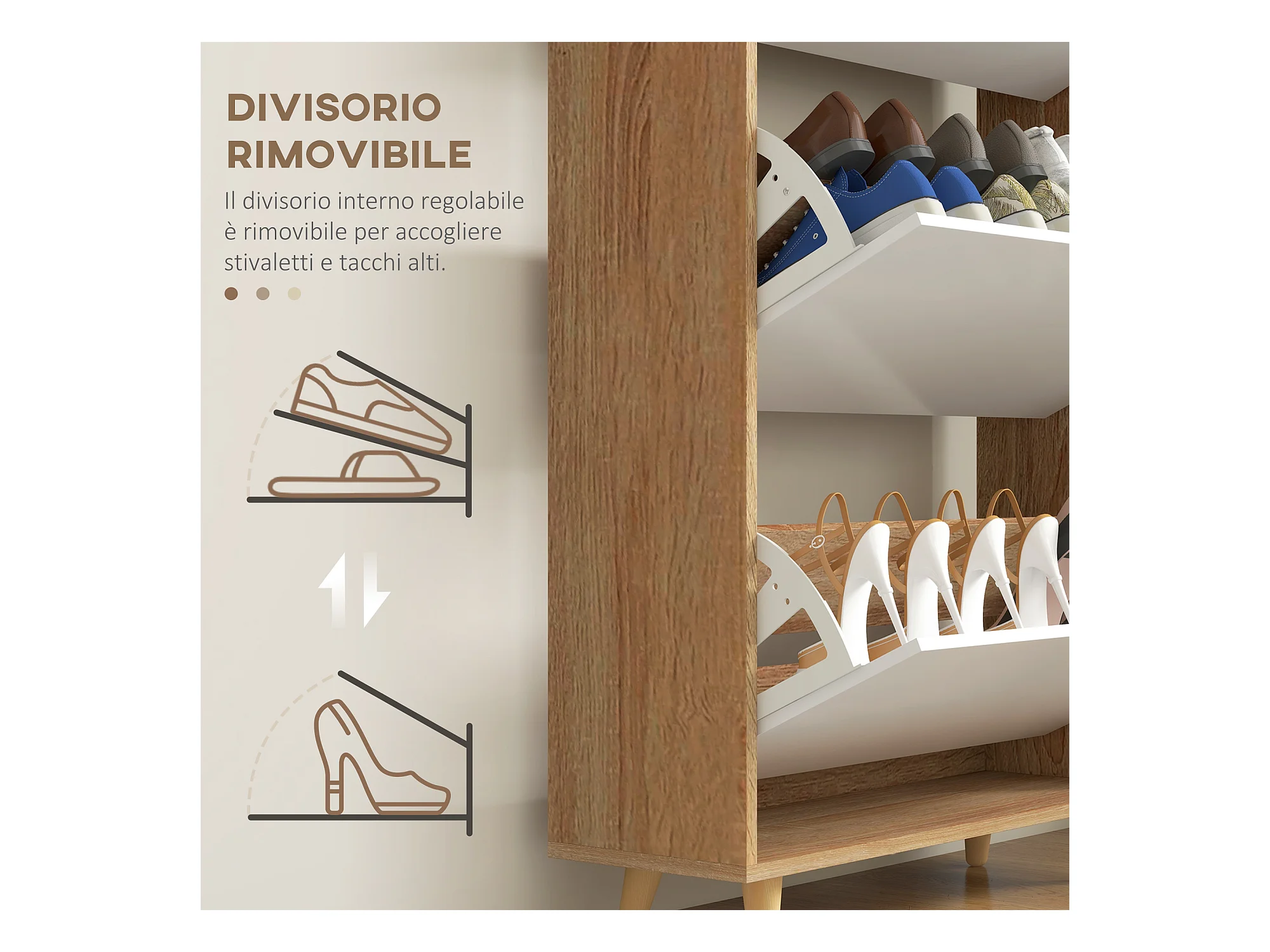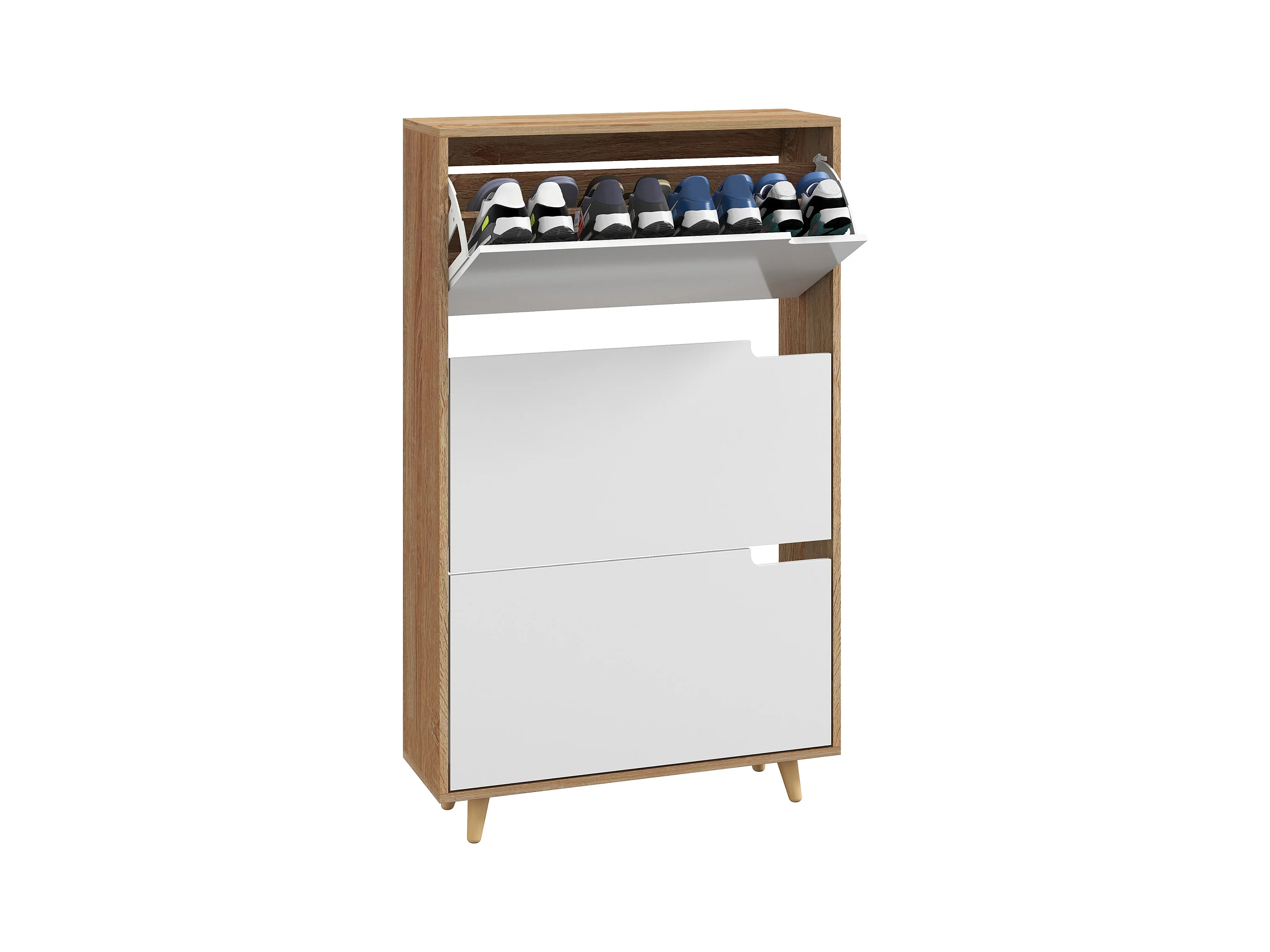 Scarpiera salvaspazio a 3 ante per 18 paia di scarpe in legno bianco