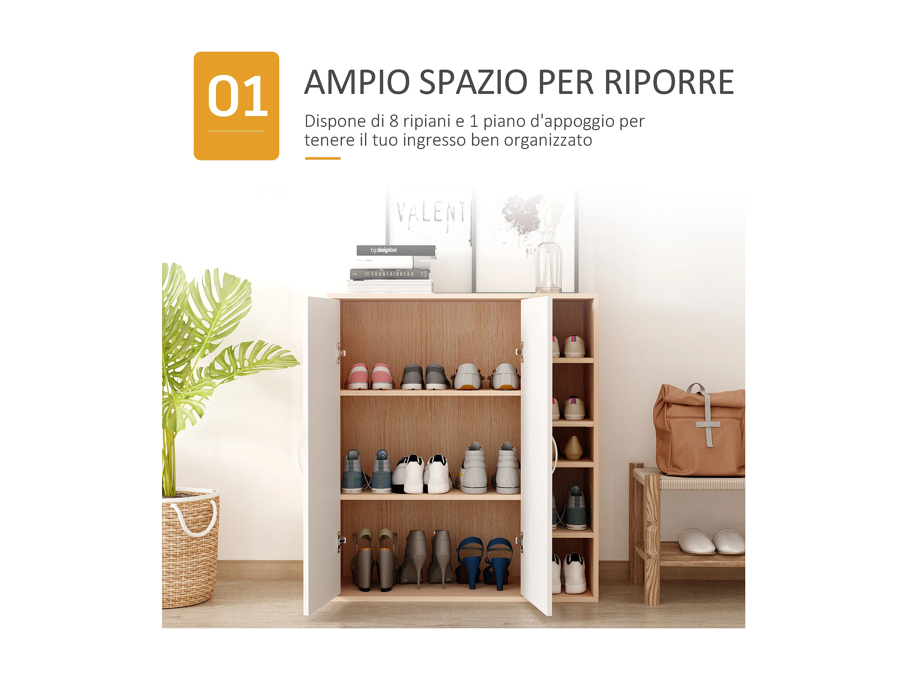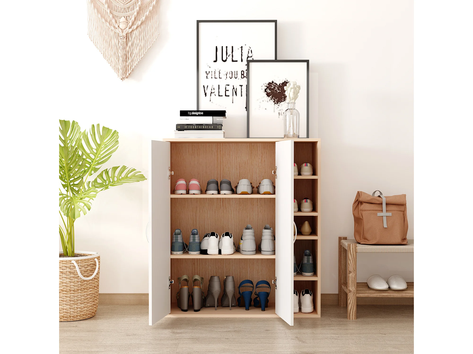 Scarpiera slim da parete con 2 ante e ripiani regolabili in legno