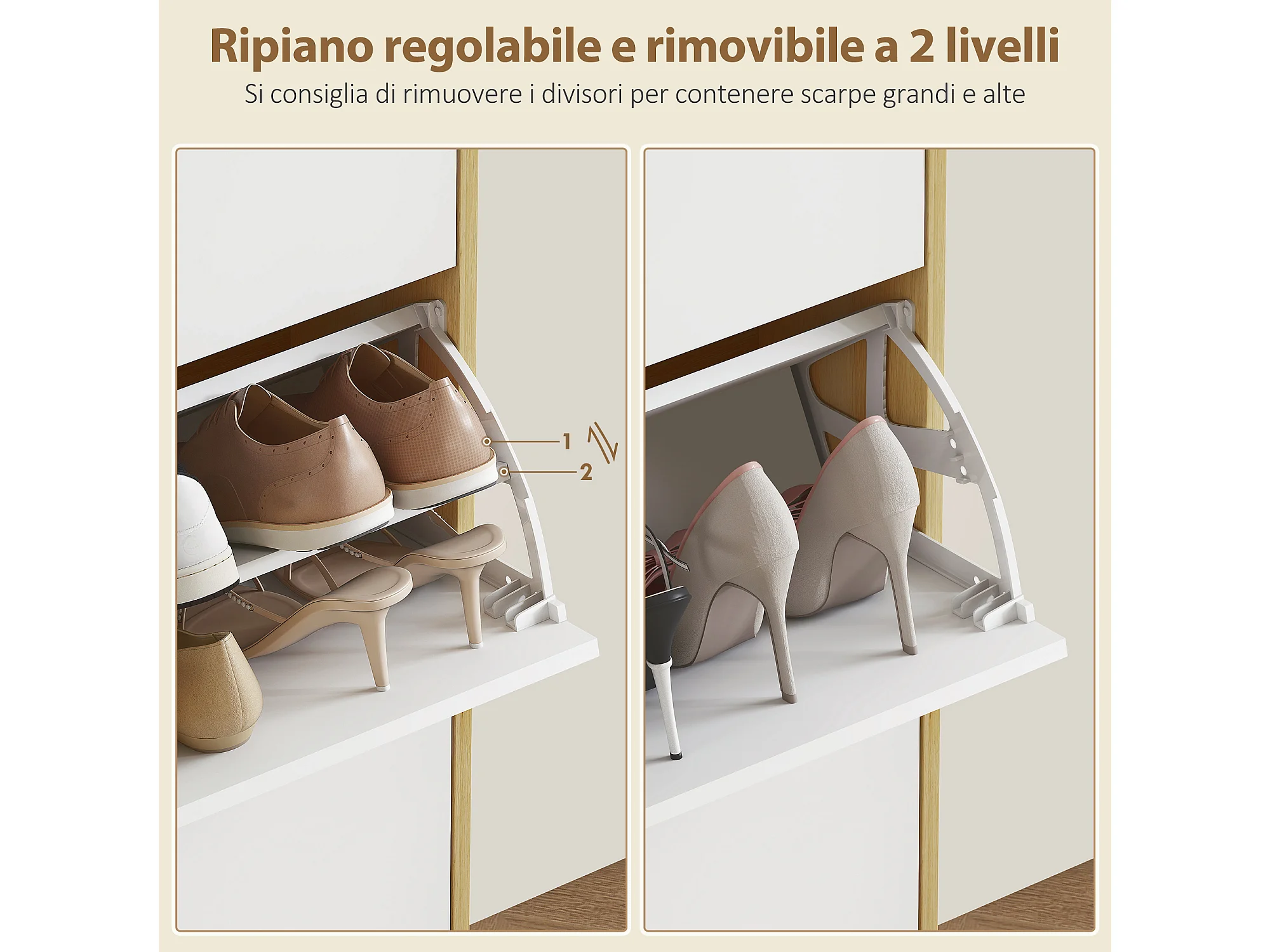 Scarpiera salvaspazio slim con 2 ante a ribalta scarpiera ingresso con ripiani regolabili