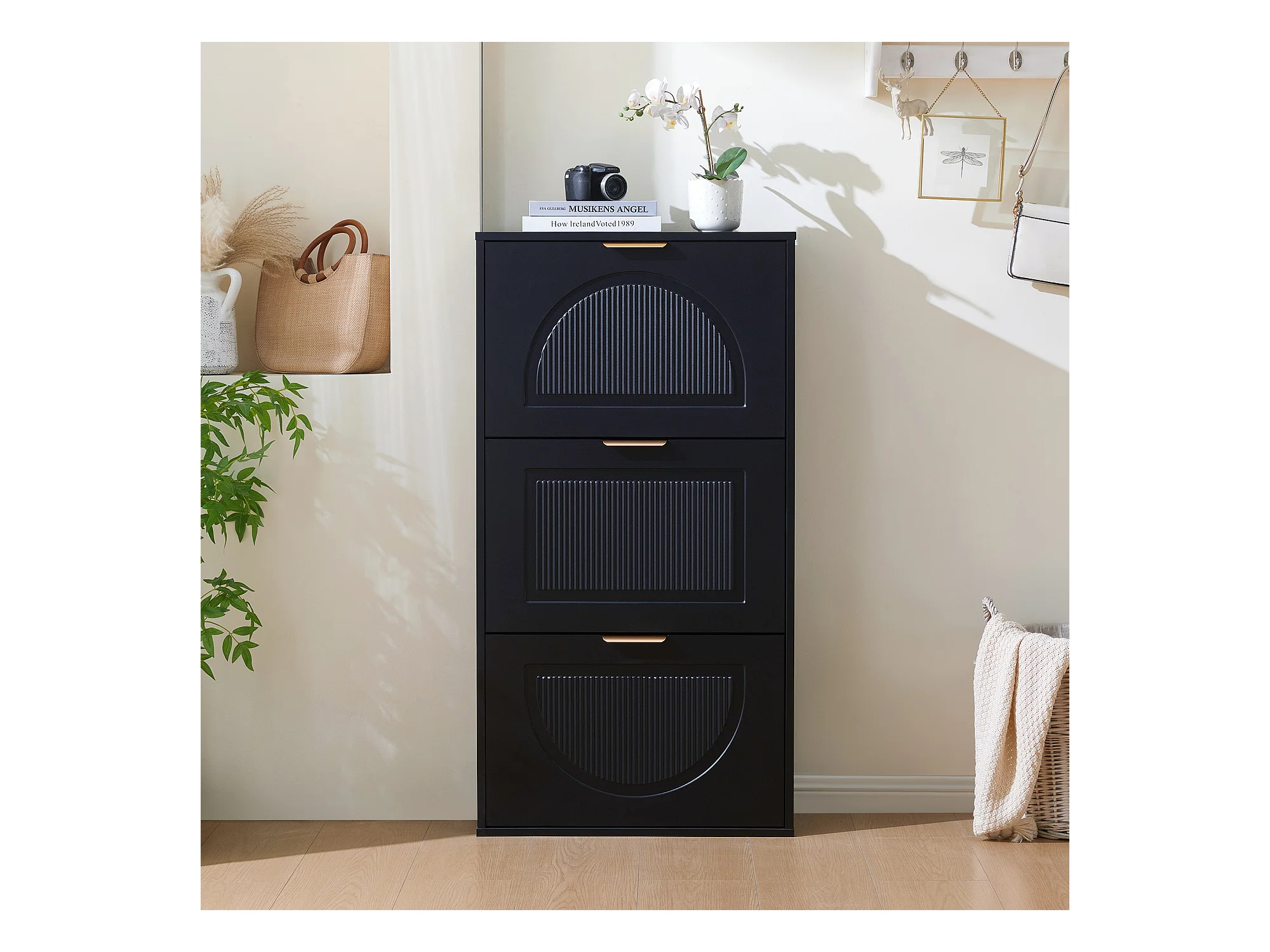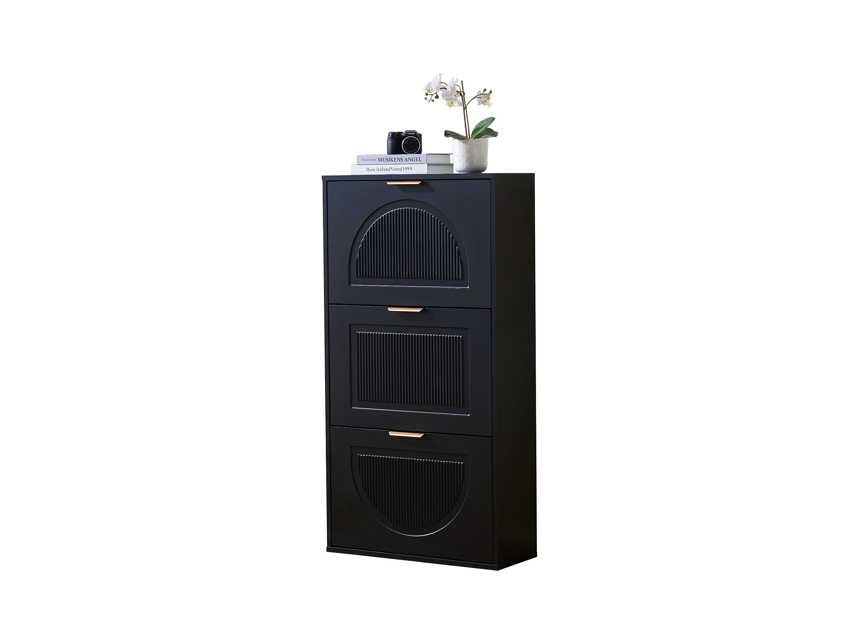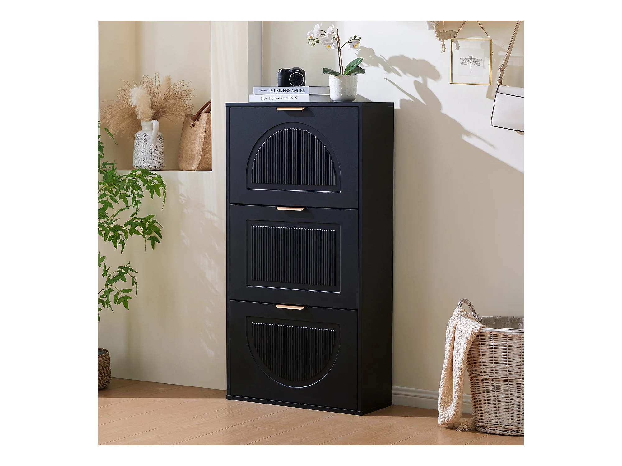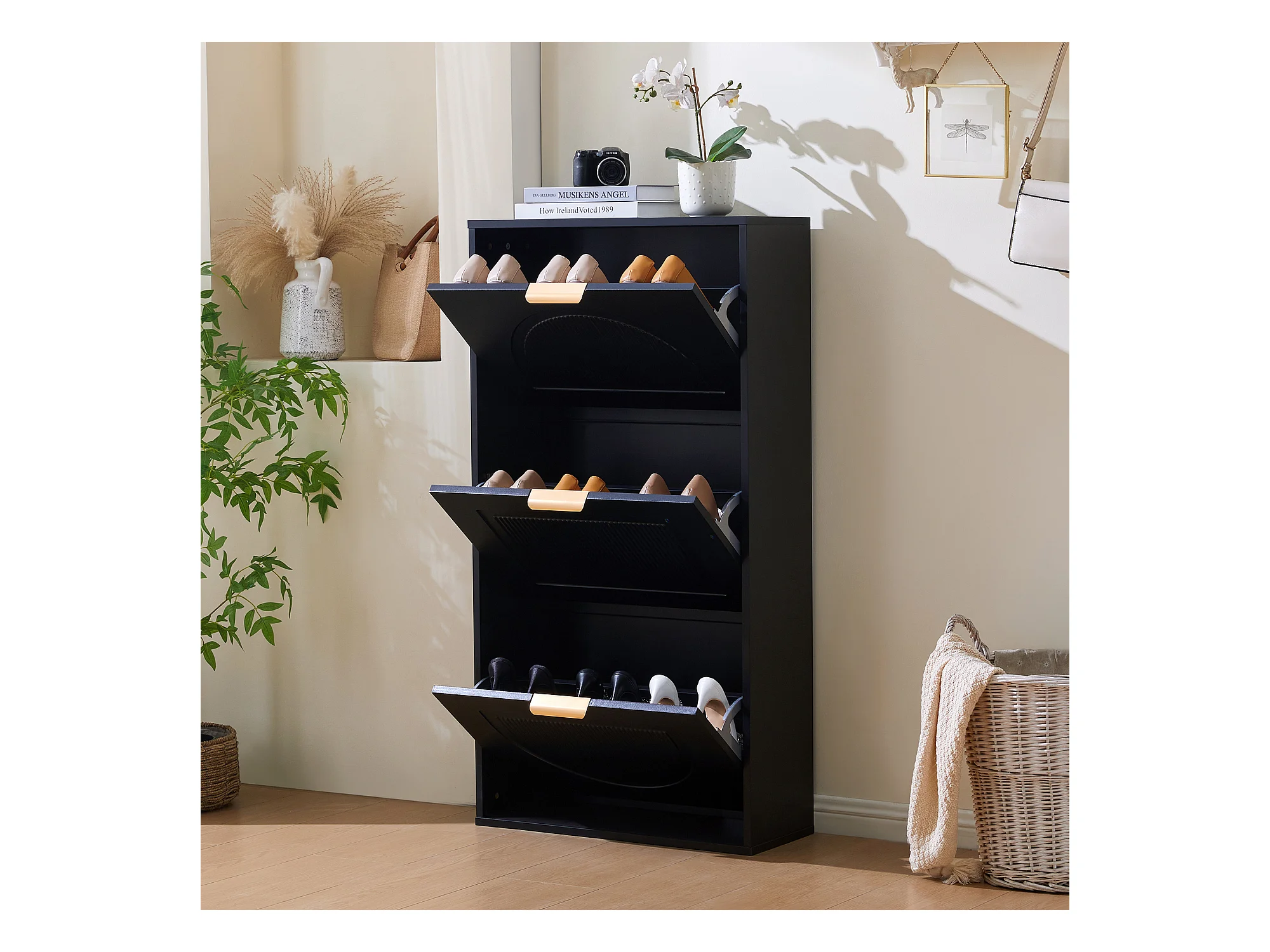 Scarpiera stretta a 3 ante - 60 x 24 x 114 cm - per soggiorno - MDF - nero