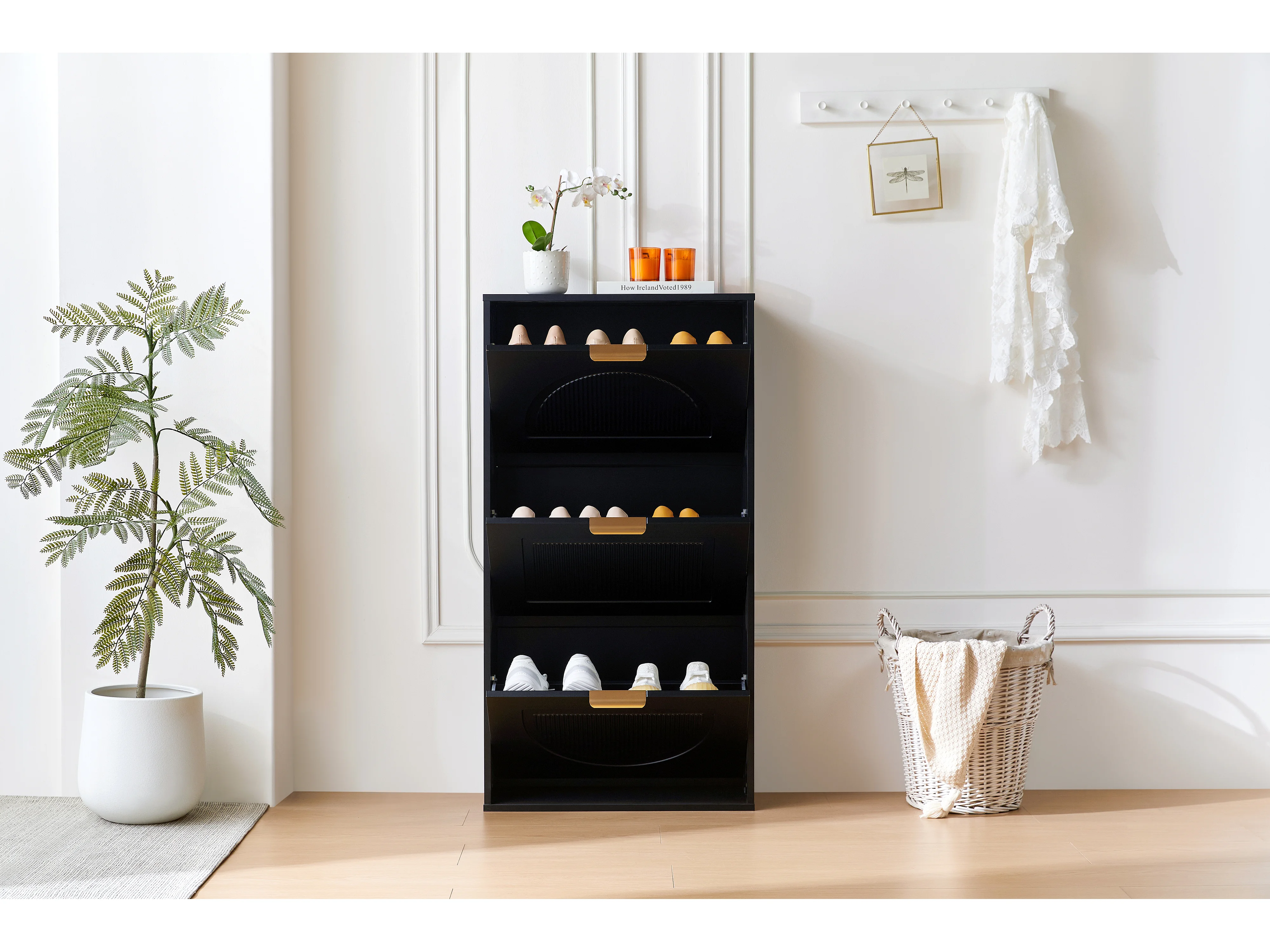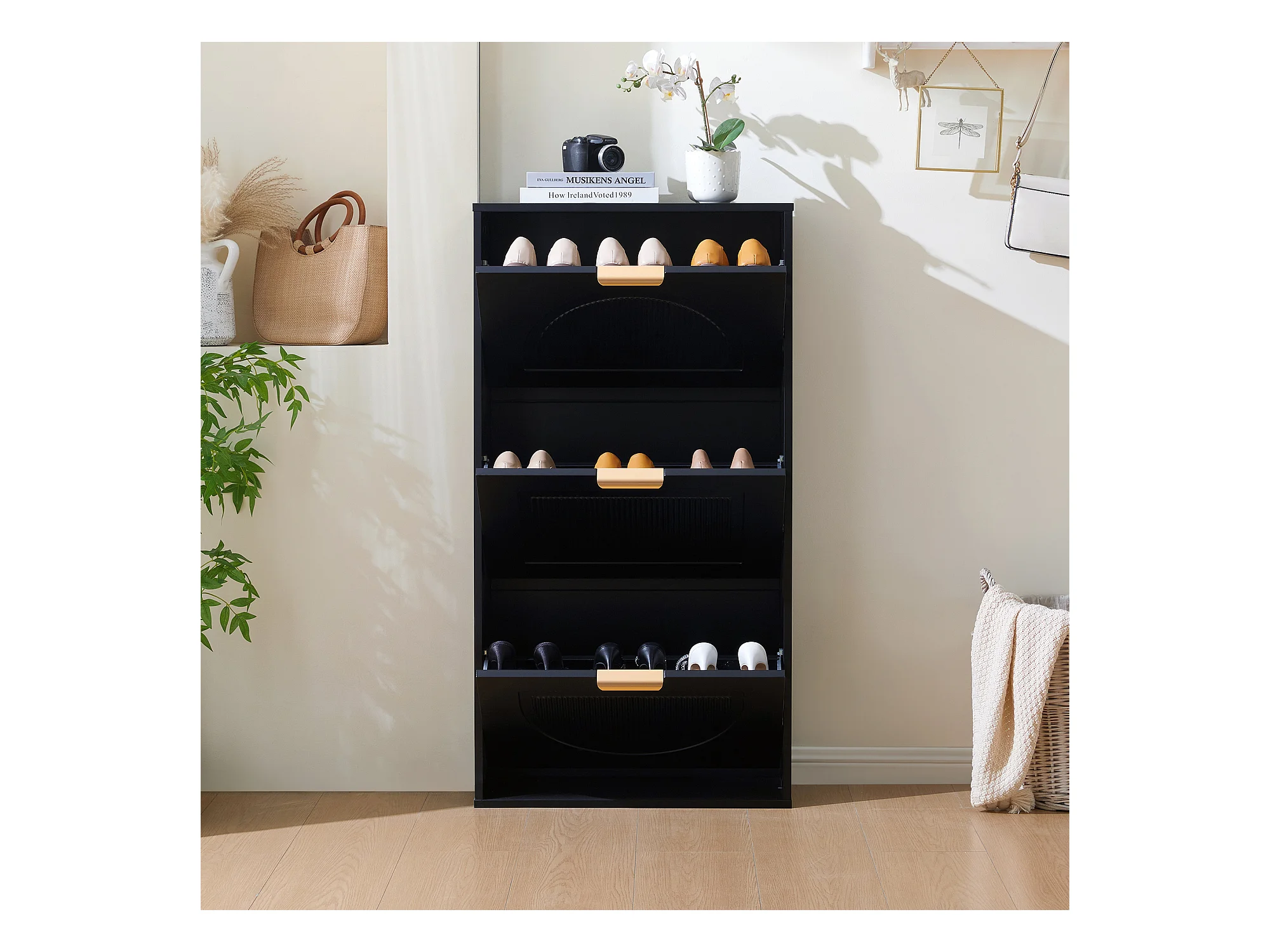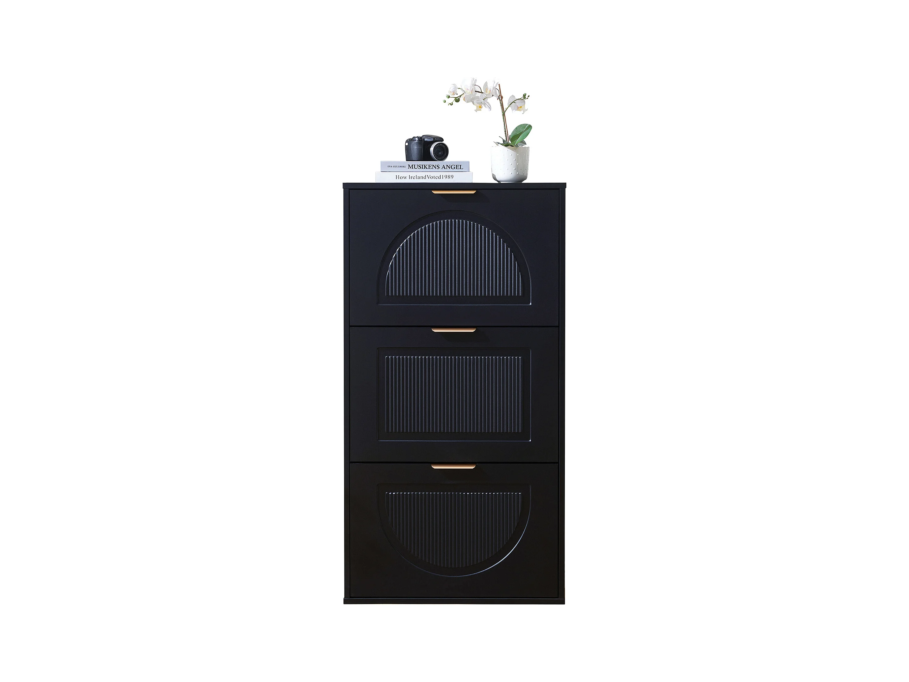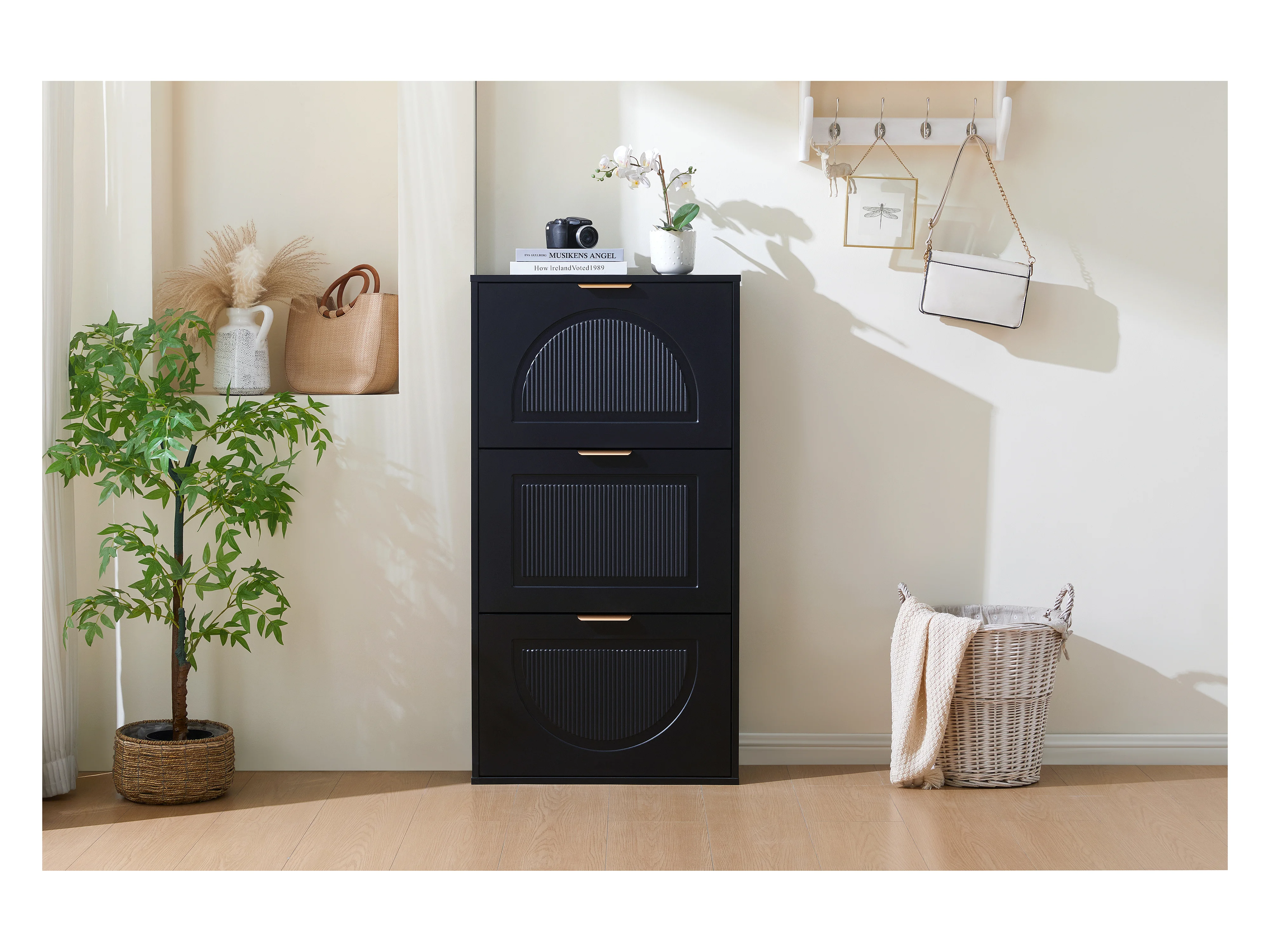 Scarpiera stretta a 3 ante - 60 x 24 x 114 cm - per soggiorno - MDF - nero