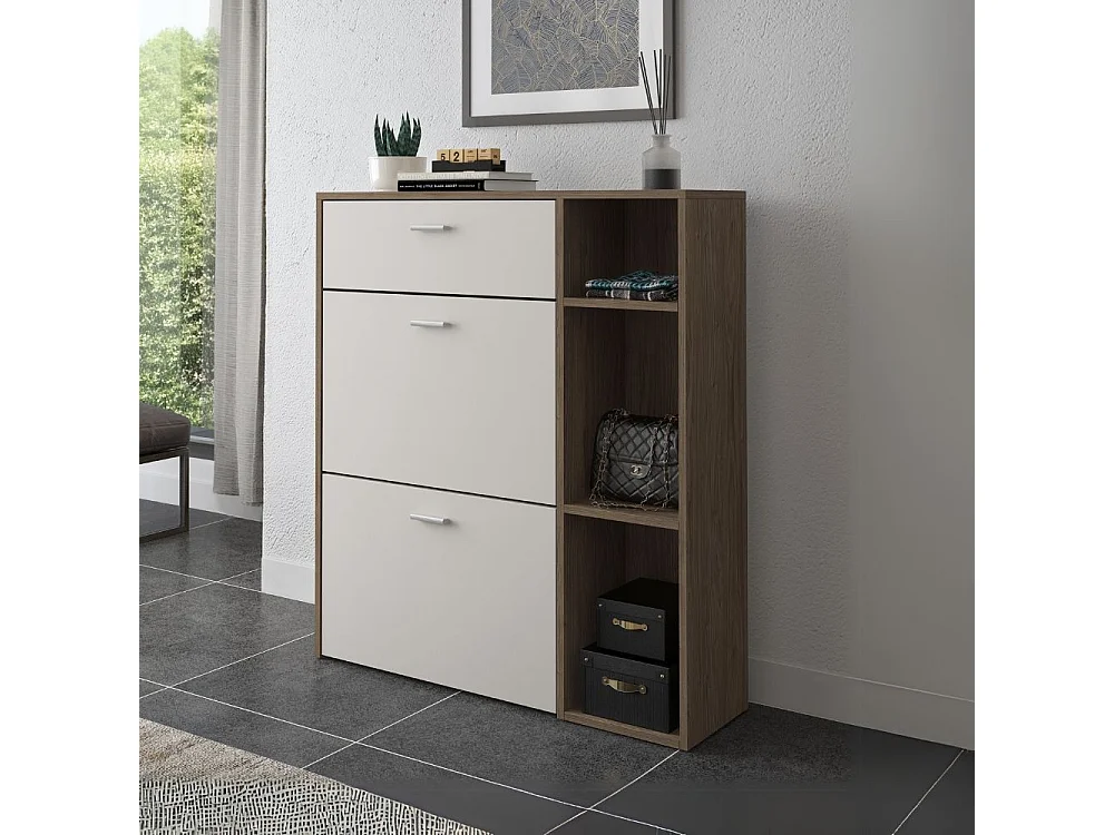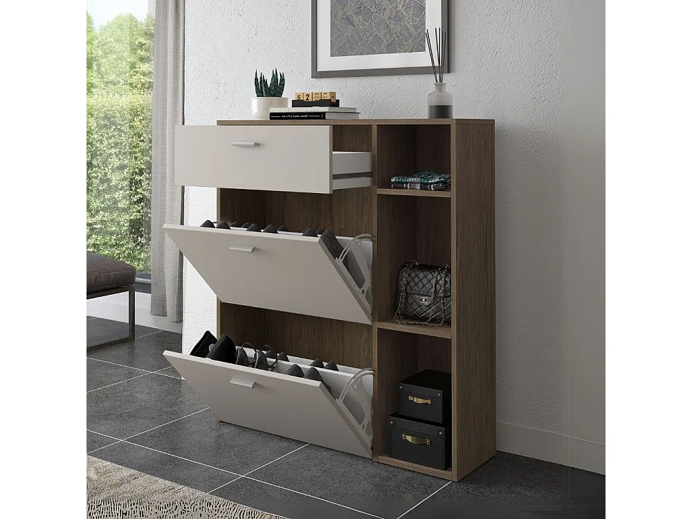 Scarpiera Takimi columella e cashmere 2 ante a ribalta e cassetto 90x26x101,5H