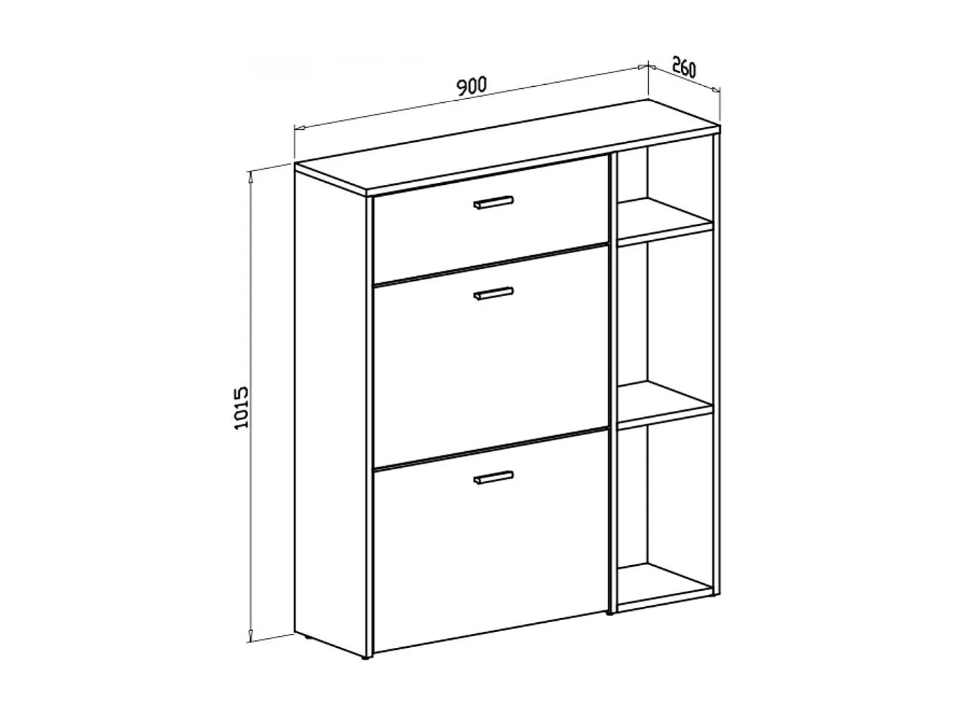 Scarpiera Takimi grafite e bianco 2 ante a ribalta e cassetto 90x26x101,5H