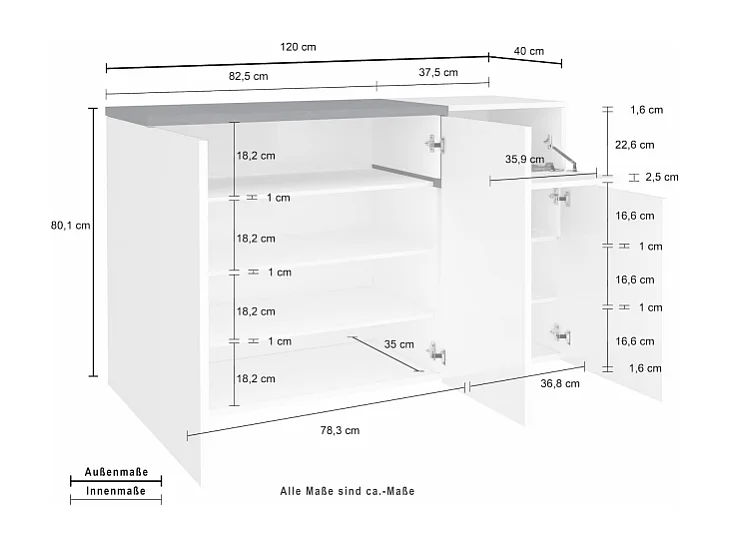 Scarpiera Zet 120 – 3 ante + 1 ribalta – Bianco Lucido/Ardesia