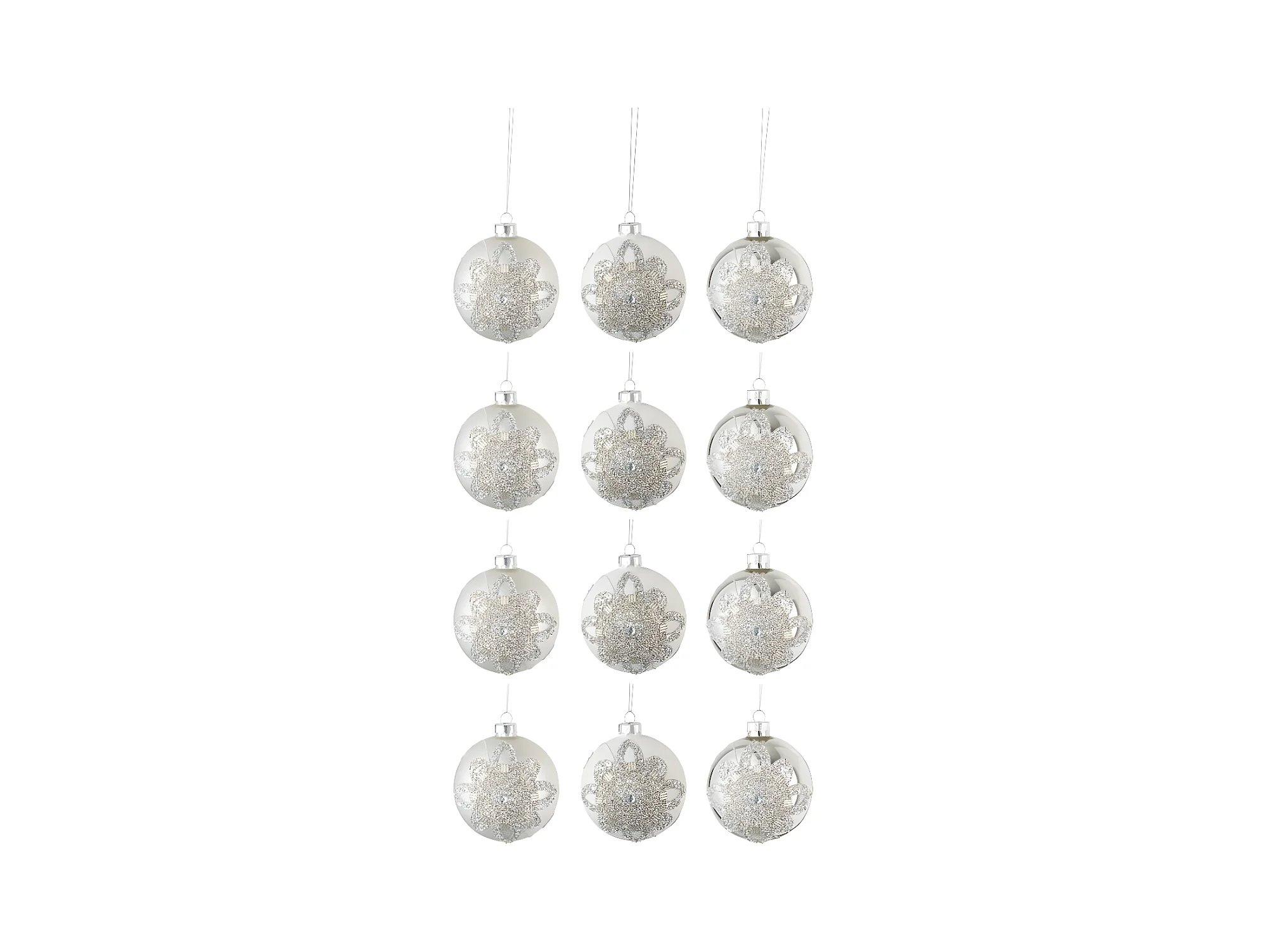 Scatola di 12 palline di Natale in vetro argento 8x8x10 cm