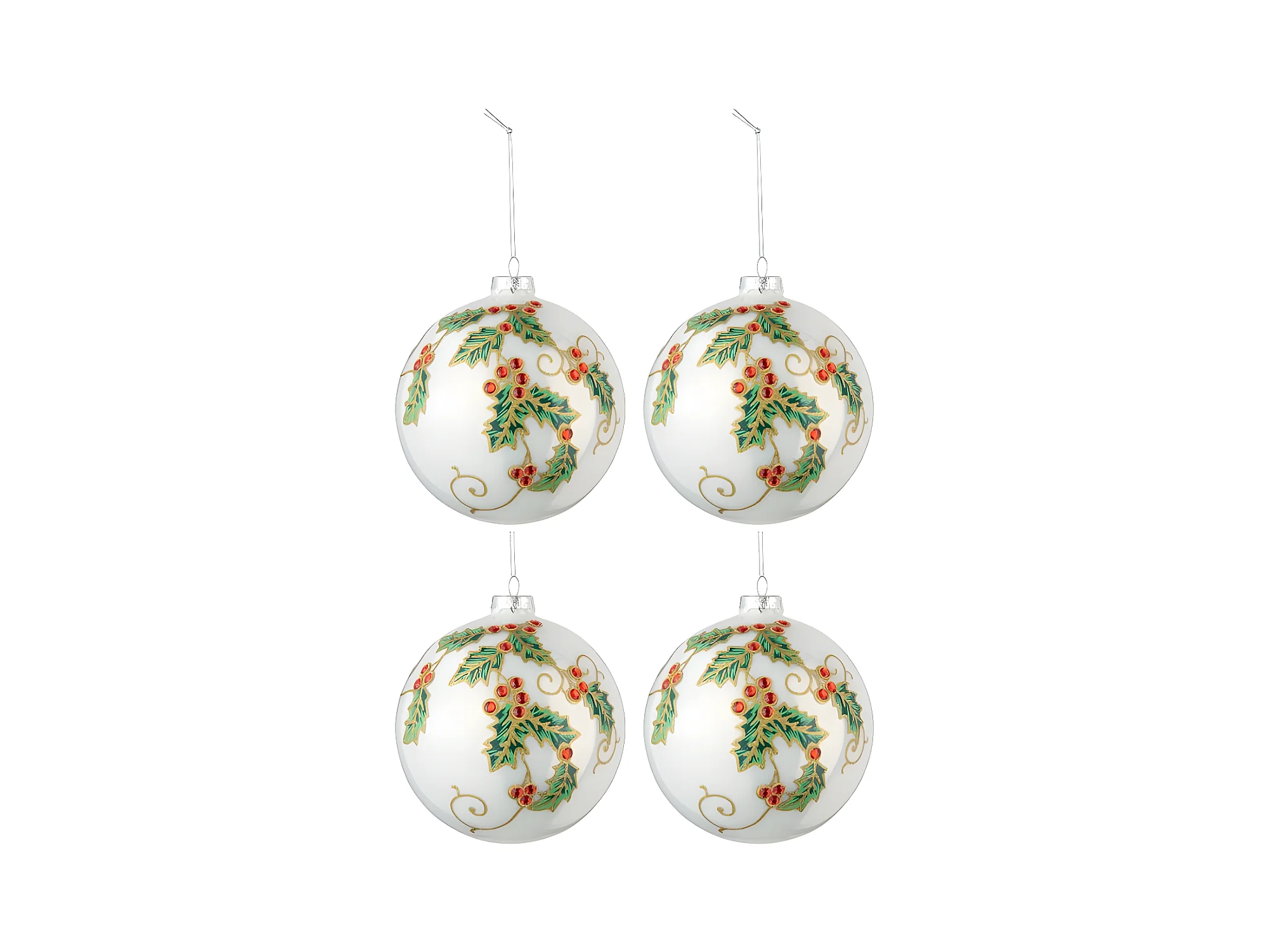 Scatola di 4 palline di Natale in vetro bianco 12x12x12 cm