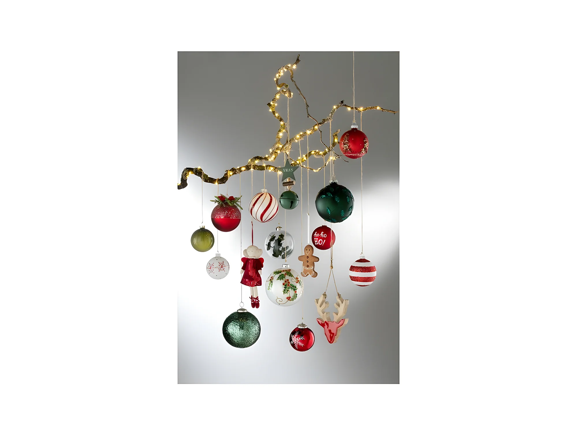 Scatola di 4 palline di Natale in vetro bianco - rosso 10x10x10 cm