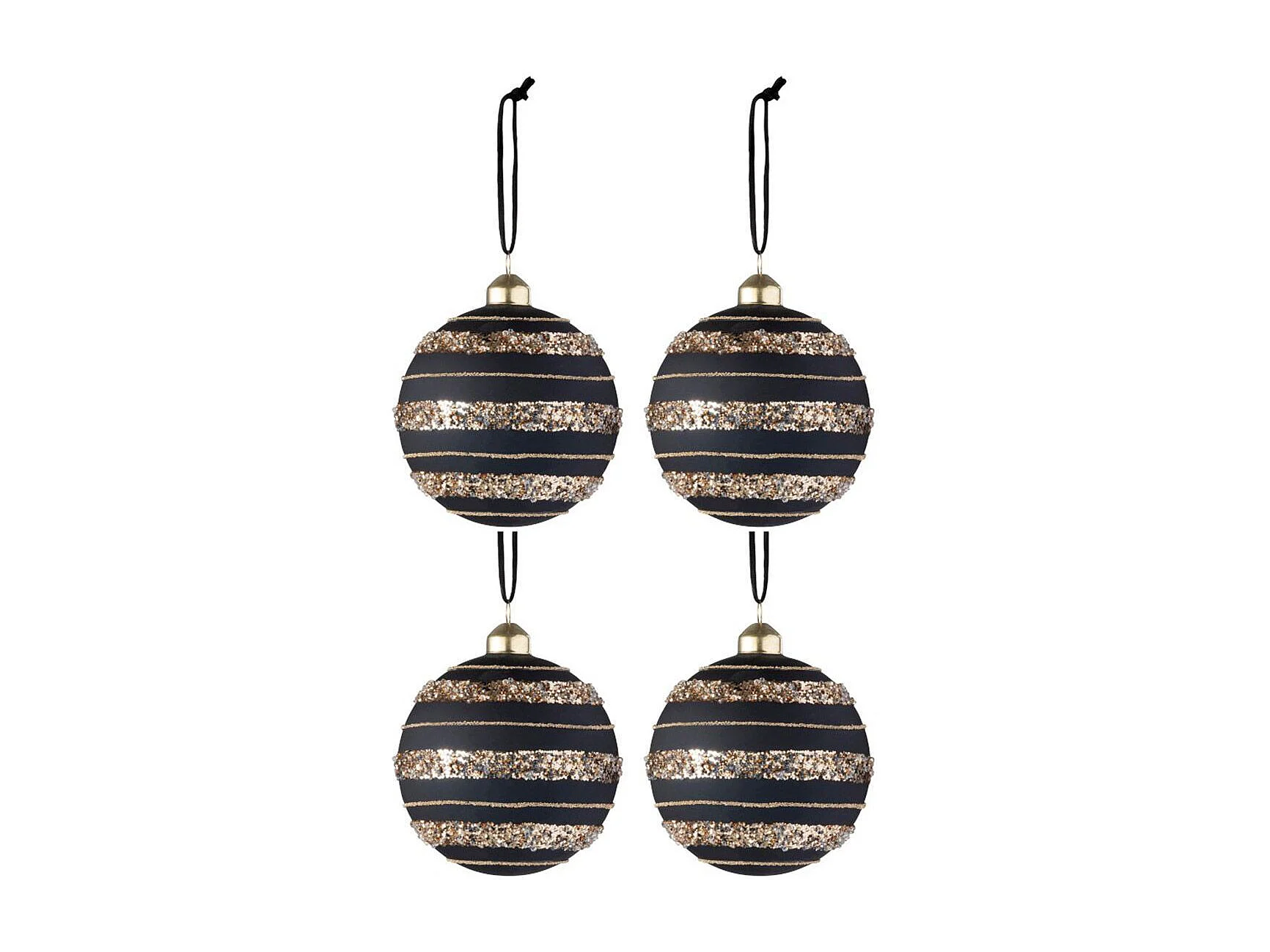 Scatola di 4 palline di Natale in vetro nero - oro 10x10x10 cm